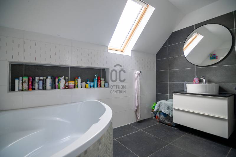 A 18. kerületben, Bélatelep egyik csendes kertvárosi környezetben kínálunk eladásra egy TÖBB GENERÁCIÓ együttélésére is alkalmas, 137 m²- hasznos alapterületű ikerházat (bruttó 153 m²-), amelyhez 360 m²-es saját kert, valamint egy külön bejáratú szuterénszinten elhelyezkedő lakás is tartozik, amely ideális lehet az önállósodó fiatalabb korosztály számára vagy kiadásra, de akár a vendégek számára is! A ház nyugodt környéken található és kényelmes környezetet kínál a családi élet számára.FŐBB JELLEMZŐK:-Több generáció együttélésére is alkalmas elrendezés (5 szoba, 2 konyha, 3 fürdő). -Egy csendes mellékutcában helyezkedik el, így átmenő forgalomtól mentes-Rendkívül világos ingatlan, nagy tágas terek -Betonfödémes, a tetőtér szükség esetén beépíthető-A fűtést egy modern kondenzációs kazán szolgáltatja-További alternatív fűtésként hűtő-fűtő klíma is rendelkezésre áll a földszinten és az emeleten, amely a nyári melegben a kellemes hőmérsékletet biztosít a lakásban. -Műanyag nyílászárók-Külső szigetelés folyamatban-Szuterén szinten 10nm-es tárolóSZINTENKÉNTI ELOSZTÁS:✅ Földszint:•Amerikai konyhás nappali•Zuhanyzós fürdőszoba WC-vel•Praktikus tárolóhelyiség (spejznek is használható)•Klíma✅ Emelet:•3 hálószoba •Sarokkádas fürdőszoba WC-vel•Hatalmas erkély, amely a folyosóról nyílik•Klíma✅ Szuterén lakrész (külön bejárattal):•Amerikai konyhás nappali•Fürdőszoba WC-vel•Ideális kiadásra vagy a fiatalabb korosztály számára különélésre FELÚJÍTÁSOK:2023-2024:-belső falak átrendezése, térrendezés-vezetékek cseréje, csatorna cseréje-teljes belső felújítás: burkolatok, festés az egész házban-új konyha (AEG mosogatógép, Whirlpool 6. érzék sütő), konyha pult kialakítás-rengeteg beépített szekrény kialakítása-3 fázis kialakítása folyamatbanKÖRNYEZET:•Családbarát környezet: a közelben iskola, óvoda•Kikapcsolódási lehetőségek: egy sarokra gondozott közösségi tér (játszótér, focipálya, kondigépek) és egy kis erdő kirándulásokhoz, kutyasétáltatáshoz.Felnőtt és Gyermek orvosi rendelők a közelben!•Kiváló közlekedés: közel a Ferihegyi repülőtér, jó közlekedési lehetőségekkel•Parkolás: akár 4 autó is parkolhat a ház előtt, garázs jelenleg nincs, de akár két garázs is kialakíthatóHa olyan otthont keres, amely támogatja a családi együttlétet, és lehetőséget kínál akár több generáció harmonikus együttélésére is, akkor ez a ház Önnek szól! Az utca végén hatalmas erdő biztosítja a nyugalmat és a jó levegőt. Ideális választás családok számára, amennyiben Ön csendes környezetben, de a várostól nem túl távol szeretne élni. Várom hívását a hét bármely napján!