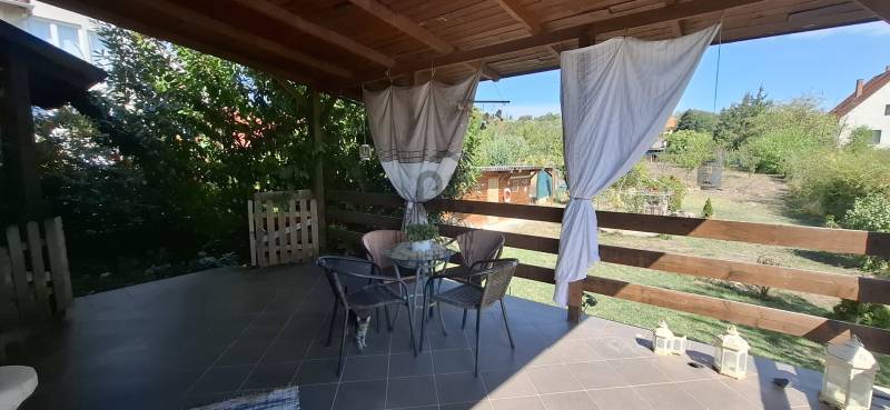 Jó elhelyezkedésű, azonnal költözhető tágas, kertes családi házas ingatlant kÍnálunk megvételre a népszerű Balatonkenesén, néhány száz méterre a városközponttól és a Balaton- parttól!Két lakás is kialakítható benne!Garázs, tároló, műhely, műterem önálló épületként elhelyezhető rajta. A telek 20 %-ig beépíthető. Kiváló választás mindazon családoknak, akik nyaralójukat vagy éppen állandó otthonukat keresik Kenesén, mert gyalogosan elérhető a strand, a vÍzpart, az óvoda, az iskola, a polgármesteri hivatal, a helyi és a távolsági buszmegállók, valamint a vasútállomás. Továbbá kiváló két lakás kialakÍtására is, mégpedig a két szint teljes elszeparálásával és egy új külső lépcső kivitelezésével megszűntetve a jelenlegi belső lépcsőházat.A szolgáltatások és a boltok is csupán néhány perces sétára vannak. Az önálló, földszint plusz tetőtér beépÍtett duplakomfortos, 5 szobás családi ház fűtéséről gáz-cirkó, cserépkályha és hűtő-fűtő kliima gondoskodik.A földszinten előszoba, közlekedő, amerikai konyhás nappali, 32 m2-es teraszkapcsolattal rendelkező szoba, kádas fürdőszoba, és egy több funkciót is betölthető, szintén terszkapcsolatos helyiség (iroda, gardróbszoba) kapott helyet. A tetőtérben közlekedő, három hálószoba és egy zuhanykabinos fürdőszoba és padlásszoba található. Két hálószoba közös erkéllyel rendelkezik, ahonnan részpanoráma nyÍlik a Balatonra.Az ingatlan a ’90-es években épült, 40-es téglából. A nyiilászárók részben már a korszerű műanyag nyiilászárókra lettek cserélve.Az 1231 m2-es telek egy kisebb elő- és egy nagyobb hátsó kertrésszel rendelkezik, mely utóbbibantároló, rózsalugas, néhány gyümölcsfa, diisznövények és füves terület találhatóak. A kertben több autó parkoltatására van lehetőség.Amennyiben szeretne többet megtudni vagy személyesen is megtekinteni az ingatlant, kérem, keressen a megadott elérhetőségeken, akár hétvégén is!