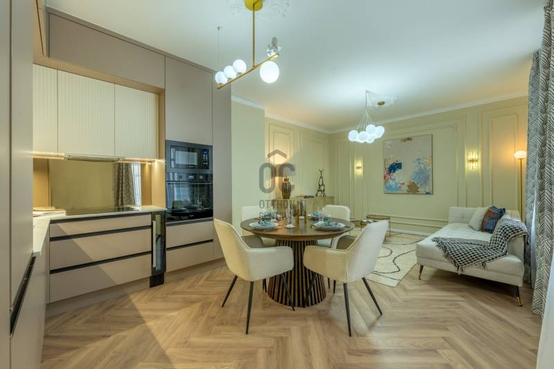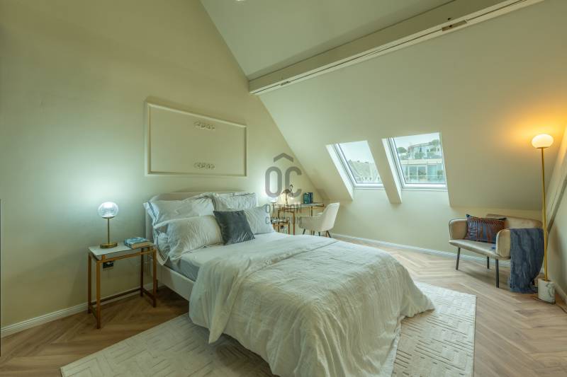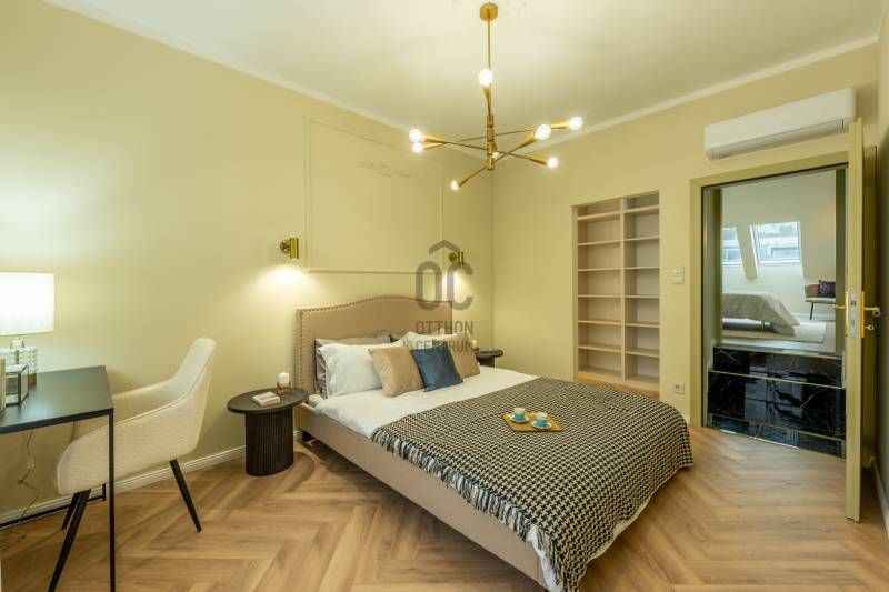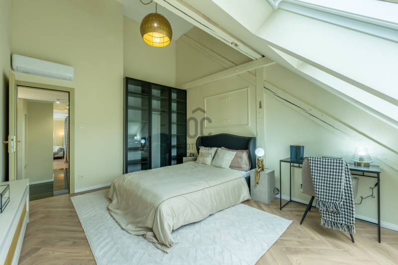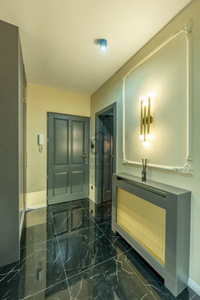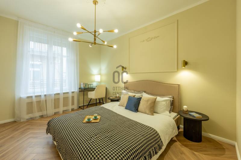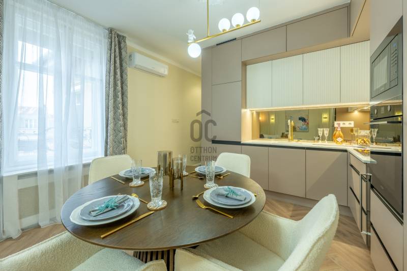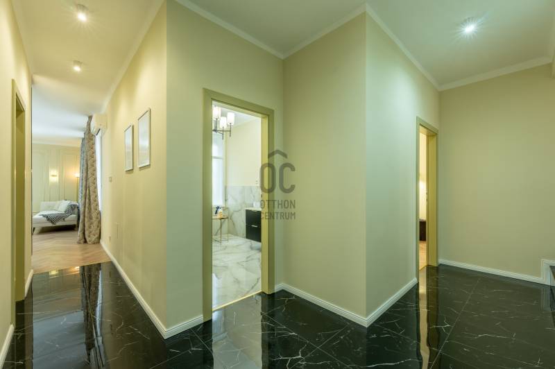 Eladásra kínálok egy kivételes adottságokkal rendelkező,113 m2-es, 4 szobás, 5. emeleti, utcai nézetű, panorámás lakást a belváros szívében, az V. kerületben a Szervita téren!Az ingatlan teljes körűen, magas színvonalon felújított, bútorozott és gépesített, így azonnal költözhető.Lakás jellemzői:Méret: Tulajdoni lap szerint 99 nm, építészmérés alapján hasznos terület 100,6 nm, teljes terület 113m2Elrendezés: Nappali-étkező-konyha egy légtérben, 3 hálószoba, 2 fürdőszoba, külön mosdó, gardróbszoba, közlekedő, saját használatú előtér.Tároló: Az 5. emeleten egy saját, 1,5 nm-es tároló tartozik hozzá.Fekvés és kilátás: Utcai nézetű, panorámás kilátással a Szervita térre.Hangulat: Világos, tágas, központi elhelyezkedése ellenére csendes.Műszaki paraméterek:Teljes körű, magas minőségű felújítás.Nyílászárók: Felújított, hőszigetelt fa ablakok; tetőtéri ablakok motoros, távirányítással működő, felső ponton nyíló kivitelben.Fűtés: Új kondenzációs kazán beépített melegvíztárolóval.Hűtés: Minden hálószoba és a nappali hőszivattyús hűtő-fűtő klímával felszerelt.Hálózatok: Teljesen új elektromos és vízvezeték-rendszer.Burkolatok: Prémium minőségű anyagok.Extrák: Kristály mosdók, motorizált redőnyök, antik ablakrácsok.Egyedi kivitelezés: Fa bejárati és beltéri ajtók, egyedi készítésű konyhabútor, beépített bútorok és kiegészítők.Konyha és fürdő: Technikai kő pultok.Biztonság: Riasztórendszer.Társasház és környék:Épület: Az 1907-ben épült, modernista stílusú társasház homlokzata márványburkolatú, díszszegecsekkel díszített. Eredetileg a Szénássy és Bárczai Áruház működött benne.Ház állapota: Rendezett, liftes épület.Parkolás: Bérelhető parkolóhely az épülettel szemben lévő Szervita Square parkolóban, valamint két közeli mélygarázsban.Egyedi igényekre szabott lakáshitelekkel állunk rendelkezésére. Bankfüggetlen Hitelcentrumunk az országban elérhető összes bank és hitelintézet ajánlatát versenyezteti az Ön számára díjmentesen.Munkatársaink nagy szakmai tapasztalattal várják Önt az előre egyeztetett időpontban akár a normál munkaidő után is.Bővebb információért és a megtekintéssel kapcsolatban hívjon bizalommal!