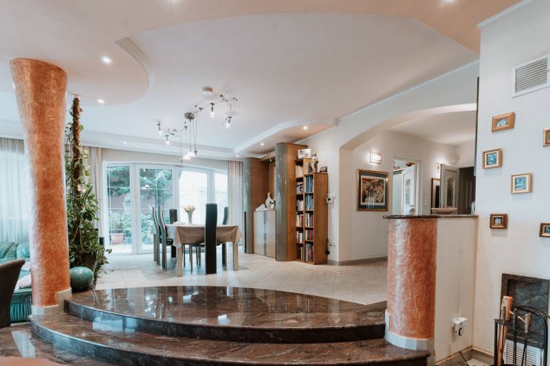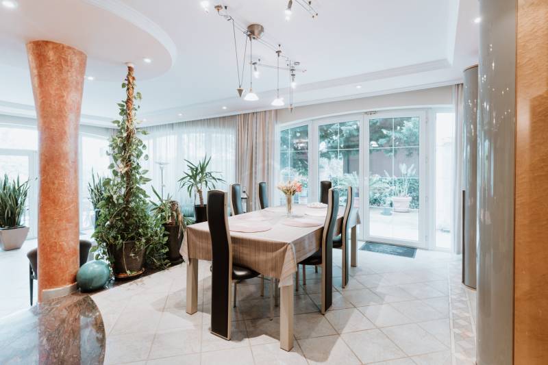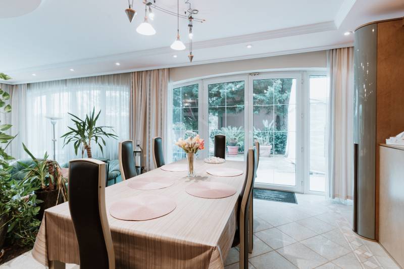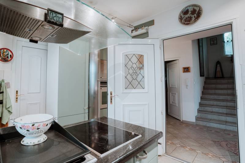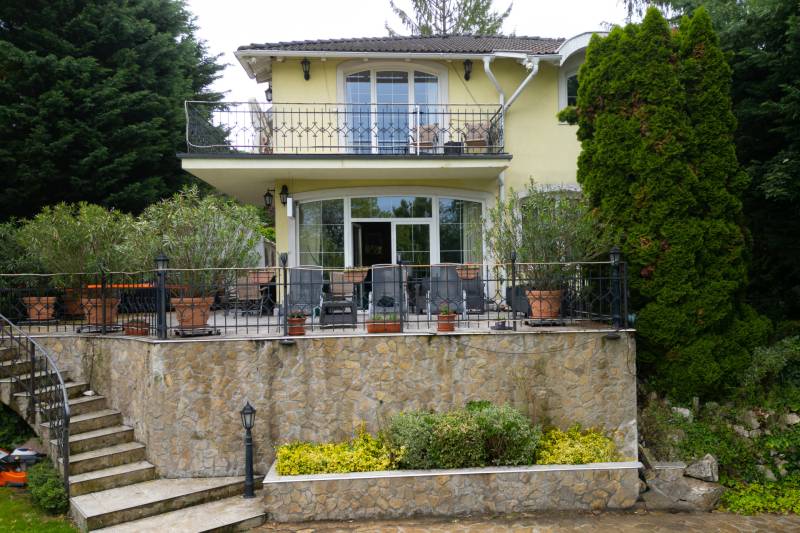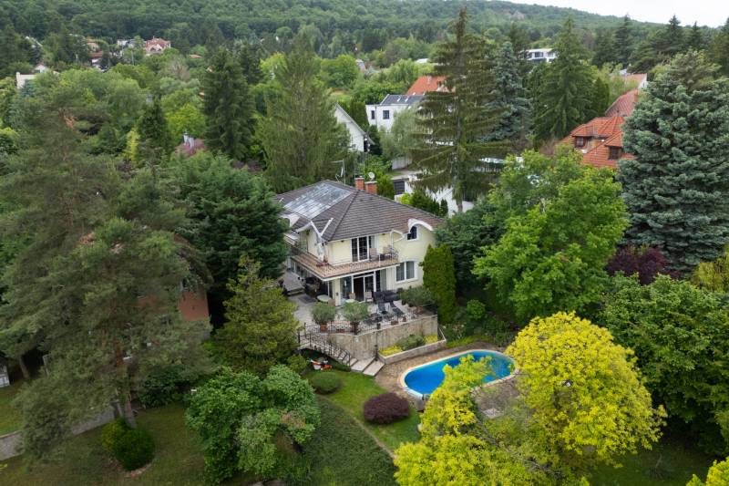 Budaliget egyik legszebb részén, lenyűgöző, örökpanorámás környezetben kínálunk megvételre egy prémium minőségű, 390 m²-es, háromszintes családi házat, 200 m²-es panorámás terasszal, nagy méretű medencével és gyönyörűen gondozott, 1043 m²-es parkosított kerttel.Ez az ingatlan nem csupán otthon – életstílus. Ideális választás többgenerációs családoknak, reprezentatív otthont keresőknek, de akár befektetési céllal is kiváló lehetőség.Főbb jellemzők:- Lakótér: bruttó 390 m², 3 szinten- Terasz: 200 m², panorámás kilátással- Telek: 1043 m², ősfás, parkosított kert- Fűtés: gázkazán, padlófűtés és radiátorok + napkollektoros meleg víz- Építés éve: 1999 – Porotherm 38-as tégla, hőszigetelt- Kilátás: a Kálvária-hegyre, zavartalan örökpanorámaElosztás:- Pinceszint: - Dupla garázs - Konditerem - Wellness helyiség (jacuzzival) - Borospince és tárolók- Földszint: - 72 m²-es nappali kandallóval - Különálló konyha, étkező, kamra - Közvetlen kapcsolat a teraszhoz és a medencéhez- Emelet: - 4 hálószoba (ebből 1 luxus lakosztály saját fürdőszobával és erkéllyel) - További 2 fürdőszoba - GardróbszobaKülső jellemzők:- Nagy méretű, fűthető medence a terasz mellett- Teljes automata öntözőrendszer (2 fúrt kút, 800 méter hosszú csőhálózattal)- Árnyas, zöld kert dísznövényekkel és fákkal- Aszfaltozott utca, kiváló lakókörnyezetEz a villa ritka lehetőség Budaligeten – egy igazi gyöngyszem, ahol a tér, a kényelem, a minőség és a természet közelsége egyszerre jelen van.