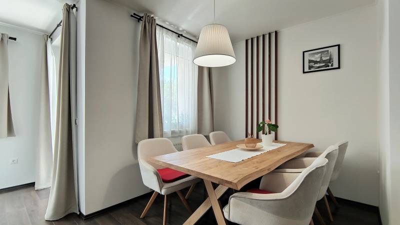 Fedezze fel ezt a különleges lehetőséget Kőszegen, Vas vármegyében, ahol egy frissen felújított, modern lakás várja Önt! Az ingatlan alapterülete 128 négyzetméter, amely három tágas szobát, két fürdőszobát, valamint egy konyhaszigetes amerikai konyhát kínál, ahol a főzés igazi élménnyé válik. A lakás két részre osztható, 2 víz és gázóra található benne. Az ingatlan tulajdoni lapjával a valós nm megegyezik, egy 26 nm garázs garázs tartozik hozzá. A nappali, tökéletes helyszín a családi összejövetelekhez vagy baráti találkozókhoz, hiszen a tágas tér és a világos, nyitott elrendezés mindenki számára kellemes atmoszférát teremt. A lakáshoz tartozik egy 4,4 négyzetméteres terasz és egy 4,47 négyzetméteres erkély, ahol élvezheti a szabadban eltöltött időt, miközben gyönyörködik a környék panorámájában. Az ingatlan állapota kiváló, a fűtés gáz (cirko) rendszerrel működik, amely biztosítja a kényelmes és gazdaságos fűtést a hideg téli hónapokban is. A beépített bútorok és szekrények nemcsak esztétikai szempontból vonzóak, hanem praktikus megoldásokat is kínálnak a tárolásra. Kőszeg központi elhelyezkedése lehetővé teszi, hogy minden fontos szolgáltatás és üzlet könnyen elérhető legyen. A környék ellátottsága kiváló, így a napi szükségletek gyorsan és kényelmesen intézhetők. A tömegközlekedési lehetőségek is kedvezőek, hiszen a város jól kapcsolódik a környező településekhez, így akár munkába járásról, akár kirándulásról van szó, mindig könnyedén elérheti célját. Az ingatlan környezetét a csend és a biztonság jellemzi, így ideális választás lehet családok számára, akik értékelik a nyugodt életformát. Ne habozzon, ha kérdései lennének, vagy szeretné megtekinteni ezt a páratlan ingatlant, bizalommal kereshet minket! Az Ön elégedettsége a legfontosabb számunkra, és szívesen állunk rendelkezésére bármilyen információval az ingatlannal és a környék adottságaival kapcsolatban. Ez a lakás nem csupán egy új otthon, hanem egy életstílus, amelyet érdemes felfedezni!