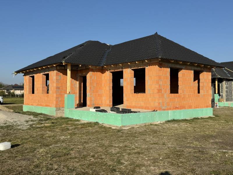 Gyöngyöshalászon a frissen parcellázott övezetben a Toldi utcával párhuzamos utcában, 800m2-es telken 4 szoba + nappalis, amerikai konyhás, nettó 96,92 m2 hasznos lakótérrel rendelkező, új építésű önálló családi ház eladó.Csok plusz elérhető!Az ingatlan 30-as Nútféderes tégla falazóelemből épül, fa födémmel.A tető héjazata antracit betoncserép lesz, a homlokzatok 15cm EPS, a padló 10cm Austrotherm AT-N100-as, a vízszintes födém 30cm Ásványgyapot szigeteléssel lesz ellátva.Hat légkamrás 3 rétegű evegekkel szerelt nyílászárók kerülnek beépítésre.A fűtést 10kw-os monoblockos hőszivattyús rendszer fogja ellátni, padlófűtéssel. A használati melegvízről hőszivattyús bojler gondoskodik.A műszaki tartalom választható az alábbi költségkereten belül:-hidegburkolat:4000.- Ft./m2-ig-melegburkolat:4000.- Ft./m2-ig-csaptelepek:25.000.- Ft./db-kád vagy zuhany: 50.000.- Ft.-beltéri ajtók:60.000.- Ft./dbElektromos kiépítés:-Konnektorok szobákban: 3 db-Konnektorok nappaliban 4db + internet és kábeltv kiállás-Konnektorok konyhában: 6db-Világítás helyiségenként 1-1 db-Kábeltévé: ElőkészítésMagasabb árú tatalom is választható a különbség finanszírozásával.Riasztó előkészítés és kapu mozgató elektronika előkészítés is készül.Kérésre szívesen küldünk komplett tervdokumentációt, műszaki leírást.A kivitelező korábban épített, már értékesített és birtokbaadott ingatlanjait komoly érdeklődés esetén szívesen megmutatjuk referenciaként. Várható átadás 2026 első negyedév.INGYENES hitel tanácsadás, CSOK Plusz ügyintézés!BANKFÜGGETLEN hitelcentrumunk az összes elérhető bank és hitelintézet ajánlatát versenyezteti az Ön kedvéért, ráadásul DÍJMENTESEN.- Egyedi, bankfiókban nem elérhető kamat- és díjkedvezmények- Hitelképesség vizsgálat- Idő, energia és pénz megtakarítás- Teljes hivatali ügyintézésAmennyiben hirdetésem felkeltette az érdeklődését vagy egyéb információra van szüksége hívjon bizalommal!