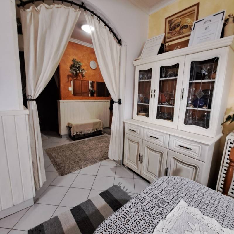 Balatonkenesén eladásra kínálunk egy csendes, erdő melletti, zöldövezeti részen lévő 120 m2-es gyönyörű családi házat 720 m2-es telekkel a GDN Ingatlanhálózat kínálatából.Tulajdonságok:- A Balatontól kb 1,5 kilóméterre helyezkedik el a ( csaldi ház + 30 m2-es téliesített különálló faház, 16 m2-es szaletli ) közművesített épület.- Az igényesen kialakított ház kényelmes, fedett teraszáról az előtérbe jutunk. Innen nyílik a nappali, szoba, étkező, konyha, fürdőszoba WC, valamint a lépcsőfeljáró az emeletre. -Egy szép nagy 18 m2-es hátsó fedett terasz is tartozik a házhoz, amely a külső lépcsőfeljáró mellett, a nappaliból is megközelíthető. - Az emeleten 3 szoba található, valamint infra szauna, fürdő és különálló WC, valamint közlekedő kapott még helyet, amely akár konyha-étkezőnek is kialakítható, hogy akár 2 generáció, teljesen külön élhessen egymás mellett. - Víz, villany, gáz, csatorna a házba bekötésre került, a külső falazat 10 cm-es hőszigeteléssel ellátott. - Az épület cserép tetővel, tégla falazattal és vasbeton födémmel készült, a nyílászárók fa szerkezetűek, redőnnyel felszereltek.- Fűtése gáz cirkó, valamint gyönyörű kandallókályhával megoldott.-Egy igazán különleges élményben lehet részünk, ha a hátsó kertet pihenésre használjuk, ugyanis: A vendégek részére épített igényes faházikó mellett grillezhetünk, medencében fürödhetünk, kényelmes szaletliben étkezhetünk, beszélgethetünk, a napozóteraszon pihenhetünk.- Parkolás a garázsban lehetséges, illetve 2 autónak helyet ad még az autóbeálló.Illetve a vendégeink hátsó szolgalmi útról jutnak el a kisházhoz, ahol 1 autó kap még helyet a térkővel lerakott autó beállón. - Az út aszfaltos, a hátsó szolgalmi út, füves.- A közelben található élelmiszer bolt, a buszmegálló 100 m-re van, a Sós-hegy kilátó kb 20 perc sétára található, a strand úgyszintén.- További előny még, hogy a téliesített és jól szigetlet 30 m2-es faház évek óta passzív jövedelmet ad, hiszen bejáratott Booking és Szállás.hu oldalról érkeznek a vendégek, akik nagyon szeretik a csendet, nyugalmat, a pihenést, madárcsicsergést. A visszajelzések mindig nagyon jók, ami fontos lehet majd az új tulajdonosoknak is. - Ajánlom azoknak, akik Balatonkenesén szeretnének letelepedni, valamint azoknak is, akik a hangos nyüzsgéstől mentesen szeretnék szabadidejüket tölteni, madárcsicsergésre és szinte erdőben ébredni.-Ingatlanbefektetőknek pedig azért ajánlom, mert a nyaraltatást kihasználva, plusz bevételt ad évről-évre.-Az ingatlan tehermentes!Ne hagyja ki ezt a remek lehetőséget!Amennyiben a veszprémi GDN Ingatlaniroda által kínált balatonkenesei családi ház, vagy bármely, a kínálatunkban található ingatlan felkeltette érdeklődését, forduljon hozzám bizalommal!Ingatlanirodánk díjmentes, banksemleges hitelügyintézéssel, illetve ügyvédi tanácsadással is áll Ügyfeleink rendelkezésére!