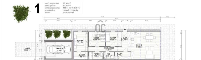 Debrecen Felső-Józsa városrészében egy új építésű, energiatakarékos családi ikerház, 977 m2-es telekkel eladó ! Ha szeretne biztos lenni abban, hogy otthona minimális rezsiköltséggel hosszú távon fenntartható, akkor ez a hirdetés önnek szól! Az ingatlan nettó 99 m2 lakótérrel + 20 m2-es garázzsal rendelkezik . 3 szoba+ amerikai konyhás nappali+ étkező, dupla fürdőszoba, tágas terek jellemzik, kiváló választás akár nagycsaládosok részére is!Az egyedi tervezésű, nagy üvegfelülethez nagy belmagasság párosul a nappali-konyha -étkező részen. Fűtése hőszivattyúval történik, amely a legmodernebb technológiát képviseli, így nemcsak környezetbarát, hanem gazdaságos megoldást is nyújt. A hűtésről klímaberendezés gondoskodik, amely a nyári hónapokban kellemes hőmérsékletet biztosít. A 3 fázis bevezetésre kerül, így kellő napelemekkel akár teljesen 0-ás rezsiköltséggel is fenntartható! Az ikerházak önálló falazattal , hangszigeteléssel ellátva. Közlekedési lehetőségek kiválóak, az autópálya pillanatok alatt elérhető. Debrecen központja mindössze néhány percnyi autóútra található, tömegközlekedés is a közelben. A városrész jól ellátott, élelmiszerüzletek, bevásárló központok, iskolák, óvodák és minden más üzlet a központban.Csok+-ra alkalmas, hitelezhető! Költözzön szeretteivel már idén ősszel!Ez az ingatlan nem csupán egy új otthon, hanem egy életstílus, amely a modern kényelmet és a természet közelségét ötvözi minimális fenntartási költséggel!További felvilágosításért várom megkeresését!Debrecen, Józsa, eladó, ház, ikerház, 4 szoba, új építésű, A+, energiatakarékos, földszintes