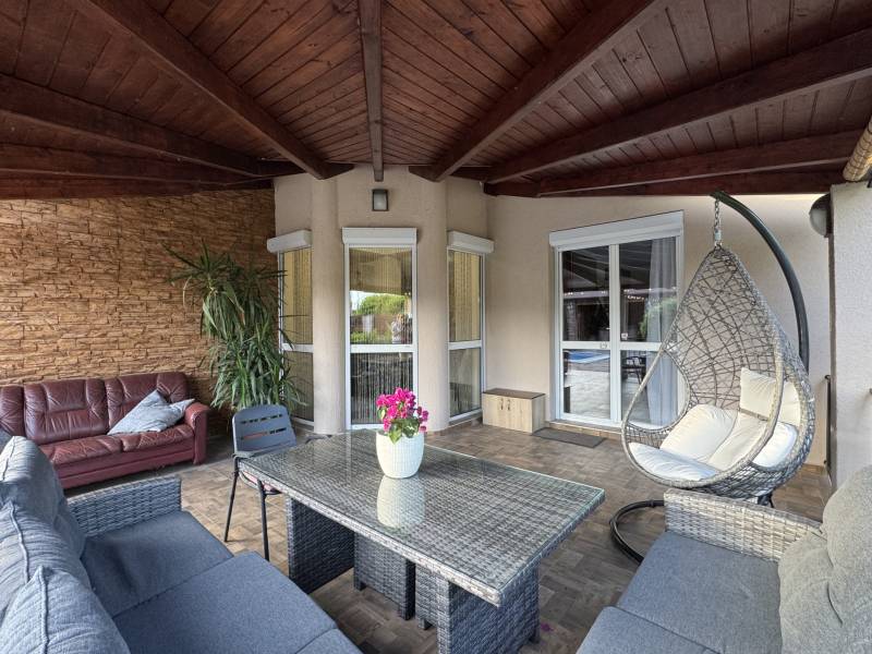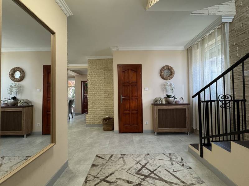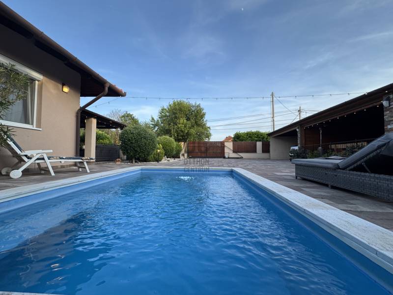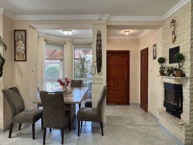 Prémium mediterrán villa Érd Parkvárosban – ahol minden nap nyaralásEladó Érd Parkváros egyik legkedveltebb részén egy egyedi megjelenésű, kompromisszummentes, prémium mediterrán hangulatú családi villa, amely nemcsak otthon, hanem életstílus.Ez az ingatlan azoknak szól, akik nem építkezni szeretnének, nem akarnak éveket várni és kivitelezési döntéseken stresszelni, hanem azonnal birtokba vennék mindazt, amit a felső kategória kínál.Alapadatok310 m² élhető lakótér850 m² rendezett, térkövezett telek5 szoba + home officeÁtgondolt, optimális elosztásAzonnal költözhető, nem felújítandó állapotPrivát wellness – a mindennapok részeFűthető medenceJakuzziKülönálló szaunaház pihenőtérrelA wellness élmény nem extra szolgáltatás, hanem a ház természetes része, saját kertben, tömeg és tagsági díjak nélkül.Kültéri élettér egész évbenNagyméretű, fedett terasz kandallóvalIdeális családi és baráti összejövetelekhezValódi kültéri nappaliként használható térParkolás és kényelem2 fedett + 2 nyitott kocsibeálló3 elektromos kapuAutomata öntözőrendszerRendezett, térkövezett udvarBelső terek – felső szegmensre hangolvaSzülői hálószoba saját fürdőszobávalÖsszesen 3 fürdőszoba és 4 WCGardróbHome officeAlsó szinten külön bejárat, saját konyhávalKonditerem vagy multifunkcionális térMűszaki és komfort felszereltségElektromos redőnyök4 klímaberendezésKandallóBeépített bútorokPadlófűtésKorszerű gázkazánBiztonsági rendszerEzek az elemek nem külön extrák, hanem a ház prémium minőségének alapvető részei.Rugalmas megoldás lehetőségeA tulajdonos nyitott lehet ingatlan beszámítására is, elsősorban:társasházi lakásra,körülbelül 100 m² alapterülettel,vagy megközelítőleg 100 millió forint értékkategóriában.Ez a megoldás ideális lehet azok számára, akik meglévő ingatlanból szeretnének továbblépni egy magasabb szintre.ÖsszegzésEz nem egy „jó állapotú ház”, hanem egy tudatosan megtervezett, prémium élettér, ahol az otthon, a wellness és a funkcionalitás egyensúlyban van.