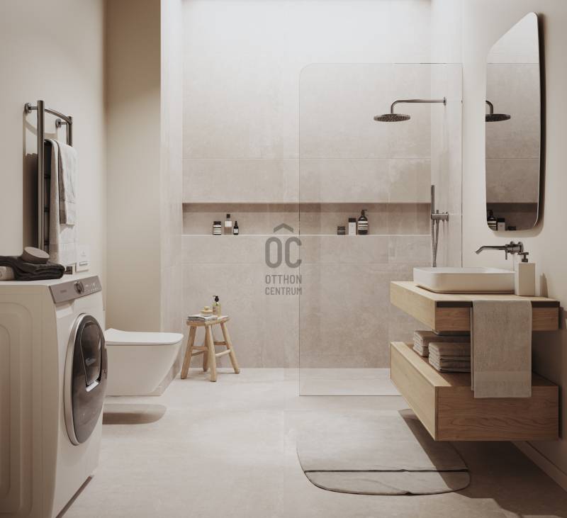 Projekt bemutatásaÉPÜLETSZERKEZETEK, KÖZPONTI GÉPÉSZET, ELEKTROMOSSÁG AlapozásPontalapozás és 25 cm vtg. vasbeton lemezalappal készülő szerkezet.Teherhordó vázszerkezetAz épületek hagyományos építési módban kerülnek kivitelezésre, monolit vasbeton vázszerkezettel, statikailagméretezett monolit vasbeton födémekkel, kitöltő kerámia és pórusbeton falakkal.FalakA pincefalak, a lépcsőházak és liftaknák körítő falai, valamint a szükséges merevítő falak vasbetonból készülnek. A külsőtérelhatároló falak Porotherm® vázkerámia és Silka® pórusbeton vázkitöltő falazatok. Mind a téglafalazatok, mindvasbeton falak az előírt hőtechnikai méretezésnek megfelelő vastagságú Austrotherm®, ill. Knauf Insulation®hőszigetelő rendszerrel készülnek. Az épületeken belüli lakáselválasztó falak hangtechnikai méretezésnek megfelelőnagyszilárdságú vázkerámia falazóblokkokból készülnek, a szükséges helyeken vasbeton pillérekkel, merevítő falakkal.A lakásokon belüli válaszfalak falazóblokkokból készülnek, a lakáselosztók szereléséhez Rigips® gipszkartonszerkezetű álmennyezet készül.FödémekA lakások területein alul, felül sík monolit vasbeton födémek készülnek rejtett gerendákkal, homlokzati síkonperemgerendákkal. A födémeken a lépés-hanggátlás biztosítására akusztikailag minősített szigetelésen úsztatottaljzatbeton készül, mely egyben a burkolatok fogadó szerkezete is.TetőfedésAz épületek fedése antracit színű Prefa® korcolt lemez fedéssel ellátott tetőfelületek.Külső nyílászárókAz Internorm® ablakok, tolóajtók és erkélyajtók külső oldalon antracit színű, alumínium vértezetű, belső oldalon fehérszínű, korszerű minimum Uw=1,0 W/m2K hőátbocsátási értékű, műanyag profilrendszerből készülnek, 3 rétegűhőszigetelő üvegezéssel, jó légzárással, továbbá akusztikailag megfelelő szerkezettel. A biztonságos és kényelmesszellőztetés biztosítása érdekében a műanyag nyílászáróval rendelkező lakásokban legalább egy nyílászárónrésszellőző elem kerül elhelyezésre. A műanyag homlokzati nyílászárók Schlotterer® redőnyszekrénnyel (redőny palástnélkül), illetve motoros mozgatás előkészítéssel a redőnyszekrényeknél elektromos kiállással (motor és távirányítónélkül) kerülnek beépítésre.Erkélyek, teraszokAz erkélyek csúszásmentesített fagyálló kerámia-, vagy gres járólappal, a teraszok csúszásmentesített fagyálló kerámiavagy gress járólappal burkoltak.Az erkélykorlátok rozsdamentes lakatos szerkezetűek, biztonsági üveg betéttel.Homlokzatok15 cm vastagságú homlokzati hőszigetelő rendszer. Mapei® rendszerű, kapart nemes vakolat felületképzés, fehérszínben, antracit nyílászáró parapet betétekkel. ÁlmennyezetA lakások egyes helyiségeiben (pl. előtér, WC, fürdő), valamint a közös területi közlekedőkben műszakiszükségességből Rigips® álmennyezet kerülhet kialakításra az elektromos és gépészeti vezetékek, berendezésektakarására.Liftek, közlekedőkÉpületenként 1db 8 személyes 630 kg teherbírású, Kleemann típusú személyfelvonó berendezés kerülbeépítésre.Esetleg még az elektromos részhez hozzá lehetne írni a felvonó elektromos betáplálása 3x20 A  legfelső szinten afelvonó akna melletti részen kerüljön kiépítésre. Valamint EPH vezeték kiépítése szükséges felvonósüllyesztéki részében. A hőszigetelt belső térben lévő liftek előtere és a belső közlekedők csúszásmentes gresslap vagy kerámia burkolattalkészülnek.GarázsAz épületek alatt és az épületek közötti terület alatt, összefüggő teremgarázs kerül kialakításra. A teremgarázsokvakolatlan, nyers vasbeton falakkal és födémekkel, járófelületén felületkeményített beton burkolattal készülnek.ÉpületgépészetAz épületek teljesítik a 7/2006. TNM rendelet közel nulla energiaigényű épületekre vonatkozó követelményeit.A melegvíz ellátását lakásonként a fürdőszobában esztétikus kialakítással 100 l-es Ariston Velis Pro 100 EU designbojler biztosítja.A gépészeti csővezetékek eltakarva a felszállóaknában, álmennyezetben, ill. a betonfödémbe kerülnek elhelyezésre. Azalkalmazott csővezetékek, szénacélcső press idom technológiai kötéssel, ötrétegű műanyag cső víz- és fűtési vezeték,PVC és PE hangcsillapított lefolyóvezeték és acéllemez illetve PE légcsatorna.Helyi kisventilátorokkal biztosítjuk a fürdőszobák és a WC helyiségek légcseréjét, kivételt képez, ahol természetesszellőzés megoldható ablakon keresztül. A konyhában d125-ös méretű szellőzőcső a falsíkig épül meg, ide vanlehetőség csatlakoztatni a szagelszívót. A szellőzőcső a lapostető fölé kerül kivezetésre.A földszint közlekedői, garázsterei gépi szellőzés nélküliek, a tárolók és a gépészeti helyiségek szellőzése a tárolóajtókon keresztüli gravitációs szellőzéssel megoldott.Az épületek vízigényét a külső közműről önálló bekötés biztosítja. Az épületen belül a szennyvíz és a csapadékvízelvezetése szétválasztott hálózaton történik.A lakások fűtése és hűtése a folyamatos tartózkodásra szolgáló helyiségekben padlófűtési és fan-coil hűtési rendszerrelvalósul meg. A szükséges hőenergiát 2db központi gépészeti helyiségben kaszkád kapcsolásban üzemelő Daikin levegő-víz hőszivattyúk alkalmazásával állítjuk elő.A gépészeti helyiségekben kerülnek elhelyezésre a további szükséges szerelvények, puffer tárolók és keringetőszivattyúk.ElektromosságA felszín feletti elektromos hálózat (lakásokon belüli is) födémszerkezetben, falban, aknában, álmennyezeti térben,valamint padlóbetonban szerelt védőcsövekbe húzott vezetékekkel készül. Az