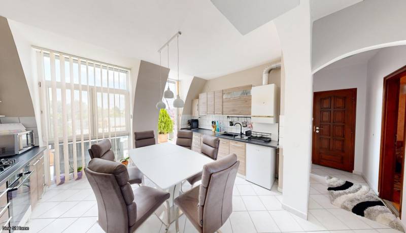 Szeretne egy olyan otthont, amely egyszerre modern, kényelmes és akár három generáció számára is tökéletes?Az otthon mellett akár vállalkozásban, irodában is gondolkodik? Örömmel írom, hogy ez esetben most megtalálta!Budaörs egyik kedvelt részén eladó egy jó állapotú, kétszintes ingatlan, mely jelenleg 3 különálló lakással rendelkezik.Ideális választás lehet ez a lehetőség Ön számára, akár saját otthont keres, akár befektetési céllal keres ingatlant.TELEKRŐL:- 429 nm, pont ideális méretű ahhoz, hogy megerőltető kerti munka nélkül élvezhesse előnyeit,- gyönyörűen parkosított, virágzó és örökzöld növényekkel beültetett kert,- a garázsban két autó számára van beállási lehetőség,- további autó számára a parkolás a kertben illetve a ház előtt is lehetséges,- kerti sütögetésre alkalmas rész és tároló is található a telken.HÁZRÓL:- A házat Ybl díjas építész (Kapy Jenő) tervezte, melynek jellegzetessége főként a belső udvar felőli részen látszik, de ennek köszönhető a felső szint 90 %-s térkihasználhatósága is. - bruttó 200, nettó 167 négyzetméteres,- 6 szobás,- két szintes, a két szint között monolit födém található,- a földszinten két, kertkapcsolatos garzon lakás található, ami természetesen egybenyitható, felújítandó állapotú,- emeleten egy nappali+3 szobás, nagyon világos, két erkélyes, szép állapotú lakás található,- 2 állásos garázs,- műanyag hang- és hőszigetelt nyílászárók, fa beltéri ajtók,- fűtése gáz cirkó padlófűtéssel és radiátoros hőleadóval az emeleten,- külön gázkazán fűti a földszinti lakásokat, radiátoros hőleadóval,- a villany a felsző szinten 3 fázisú, az alsó szinten 1 fázisú,- az ingatlan per és tehermentes,- építészeti besorolása miatt még bővíthető az épület, egy plusz emelet is építhető még rá.MŰSZAKI ÁLLAPOTÁRÓL RÖVIDEN:- A családi ház belül az emeleti részen kifogástalan állapotú, külső felújítása 2018-ban történt meg,- homlokzat grafitos dryvit szigetelésű, Baumit, szilikonos színezőanyagú,- külső burkolatok, fagyálló greslapok, a ház körül, Semmelrock térkövek vannak,- a ház építésekor is, mint a felújításkor, magas minőségű, kiemelt kategóriájú anyagokat használtak,- légkondicionált,- 30 cm-es falai vannak,- rézcsövek, külön körön futó fűtésrendszer, Grundfos keringtető szivattyú,- műanyag hang- és hőszigetelt nyílászárók,- monolit födém, öntartó szerkezetű lépcső és erkélyek, stb.A környék ellátottsága kiváló, számos bolt, étterem és szolgáltatás található a közelben, így minden szükséges kényelem könnyen elérhető. A közlekedés kitűnő, a város központja és a főbb közlekedési csomópontok gyorsan megközelíthetők, legyen szó autós vagy tömegközlekedési lehetőségekről.Bízom benne, hogy ez az ingatlan felkeltette érdeklődését. Igény esetén egyedi, személyre szabott, kedvezményes hitelek ügyintézésében szakértő kollégám tud majd segíteni Önnek.Amennyiben további kérdései lennének, várom hívását, hiszen örömmel állok rendelkezésére, hogy segítsek Önnek a legjobb döntés meghozatalában.