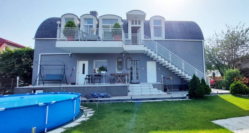 Szeretne egy olyan otthont, amely egyszerre modern, kényelmes és akár három generáció számára is tökéletes?Örömmel írom, hogy ez esetben most megtalálta!Budaörs egyik kedvelt részén eladó egy jó állapotú kétszintes ingatlan, mely jelenleg 3 különálló lakással rendelkezik.Ideális választás lehet ez a lehetőség Ön számára, akár saját otthont keres, akár befektetési céllal keres ingatlant.TELEKRŐL:- 429 nm, pont ideális méretű ahhoz, hogy megerőltető kerti munka nélkül élvezhesse előnyeit,- gyönyörűen parkosított, virágzó és örökzöld növényekkel beültetett kert,- a garázsban két autó számára van beállási lehetőség,- további autó számára a parkolás a kertben illetve a ház előtt is lehetséges,- kerti sütögetésre alkalmas rész és tároló is található a telken.HÁZRÓL:- A házat Ybl díjas építész (Kapy Jenő) tervezte, melynek jellegzetessége főként a belső udvar felőli részen látszik, de ennek köszönhető a felső szint 90 %-s térkihasználhatósága is. - bruttó 200, nettó 167 négyzetméteres,- két szintes, a két szint között monolit födém található,- a földszinten két, kertkapcsolatos garzon lakás található, ami természetesen egybenyitható, felújítandó állapotú,- emeleten egy nappali+3 szobás, nagyon világos, két erkélyes, szép állapotú lakás található,- műanyag hang- és hőszigetelt nyílászárók, fa beltéri ajtók,- fűtése gáz cirkó padlófűtéssel és radiátoros hőleadóval az emeleten,- külön gázkazán fűti a földszinti lakásokat, radiátoros hőleadóval,- a villany a felsző szinten 3 fázisú, az alsó szinten 1 fázisú,- az ingatlan per és tehermentes,- építészeti besorolása miatt még bővíthető az épület, egy plusz emelet is építhető még rá.MŰSZAKI ÁLLAPOTÁRÓL RÖVIDEN:- A családi ház belül az emeleti részen kifogástalan állapotú, külső felújítása 2018-ban történt meg,- homlokzat grafitos dryvit szigetelésű, Baumit, szilikonos színezőanyagú,- külső burkolatok, fagyálló greslapok, a ház körül, Semmelrock térkövek vannak,- a ház építésekor is, mint a felújításkor, magas minőségű, kiemelt kategóriájú anyagokat használtak,- légkondicionált,- 30 cm-es falai vannak,- rézcsövek, külön körön futó fűtésrendszer, Grundfos keringtető szivattyú,- műanyag hang- és hőszigetelt nyílászárók,- monolit födém, öntartó szerkezetű lépcső és erkélyek, stb.A környék ellátottsága kiváló, számos bolt, étterem és szolgáltatás található a közelben, így minden szükséges kényelem könnyen elérhető. A közlekedés kitűnő, a város központja és a főbb közlekedési csomópontok gyorsan megközelíthetők, legyen szó autós vagy tömegközlekedési lehetőségekről.Bízom benne, hogy ez az ingatlan felkeltette érdeklődését. Igény esetén egyedi, személyre szabott, kedvezményes hitelek ügyintézésében szakértő kollégám tud majd segíteni Önnek.Amennyiben további kérdései lennének, várom hívását, hiszen örömmel állok rendelkezésére, hogy segítsek Önnek a legjobb döntés meghozatalában.