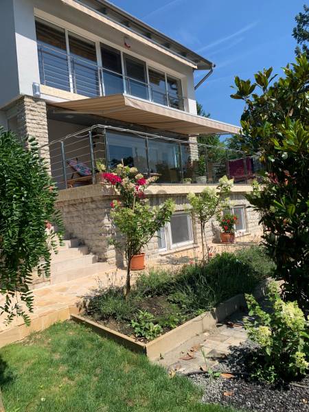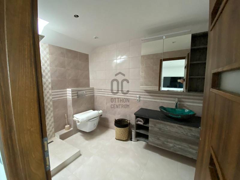 Balatonszepezd központi részén 949 négyzetméteres telekkel rendelkező lakóingatlan eladó, melyet 2021-ben teljes körűen felújítottak. Az ingatlan egy napfényes szuterén szintből, egy emeletből és egy tetőtérből áll. A külön bejáratú, kertkapcsolatos szuterénben mosókonyhával összekötött fürdőszoba+wc, valamint egy nappali található. A földszinten fürdőszoba+wc, egy amerikai konyha és nappali, valamint egy gardrób helyiség is található. Ehhez a részhez kapcsolódik egy balatoni panorámával rendelkező terasz. A felső emelet egy dolgozósarokból, egy nappali és hálószoba részből áll, amelyhez külön gardrób és fürdőszoba+wc csatlakozik. Ez a szint is Balatonra néző panorámával nyújt csodaszép látványt az év minden szakában. A ház fűtését Vaillant kombi gázkazán biztosítja. A földszinten egy működőképes kandalló is található. Emellett minden szinten beszerelésre került 1-1 hűtésre-fűtésre alkalmas légkondícionáló berendezés. A kertben egy fedett kocsibeálló, valamint több autó parkolására alkalmas viacolor térkővel kirakott kocsibehajtó található. A ház mellett egy teljesen felszerelt, gépesített nyári konyha, egy kerti zuhanyzó, bográcsozó-grillező és egy tároló kamra helyezkedik el. A télen-nyáron zöldellő kertben fúrt kút és locsolórendszer van kiépítve. A ház bejáratain és ablakain szúnyoghálók, elektromos redőnyök, sötétítők, a terasz és tetőtér ablakai felett napellenzők vannak. Az épület riasztórendszerrel felszerelt. A kert több mint 100 féle növénnyel beültetett, a mediterrán növények, a ritka fák, a veteményes- és a fűszerkert gondosan ápolt és kertészekkel karbantartott. Méretek: Telek: 949 m² Terasz: 31,08 m² Szuterén: 24,43 m² Földszint: 31,64 m² Emelet: 43,9 m² Nyárikonyha: 21 m² Fedett kocsibeálló: 24 m² Amennyiben kérdése merülne fel az ingatlannal kapcsolatban, illetve szeretné azt megtekinteni, kérem keressen megadott elérhetőségeim egyikén!