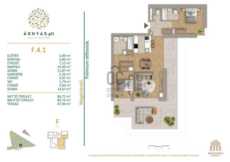 Projekt bemutatásaA PROJEKTRŐLA nagysikerű Németvölgyi Residence után újabb XII. kerületi fejlesztésünk épül a környéken, az Árnyas 40 Villa Suites. A két hektáros területen 6 db négyemeletes villaépület épül.LOKÁCIÓAz Árnyas út és a Budakeszi út kereszteződésében fekvő telken összesen 102 prémium minőségű lakást építünk, melyekből lélegzetelállító panoráma nyílik a városra és a budai hegyekre. Egyedülálló elhelyezkedése révén biztosítja a mindennapok kényelmét. A környéken elhelyezkedő, iskolák, óvodák, bevásárlóközpontok színvonalas szolgáltatásokat kínálnak az itt élőknek.A terület jó közlekedési adottságokkal rendelkezik, hiszen mind autóval, mind tömegközlekedéssel könnyedén megközelíthető, a közlekedési csomópontok 10-15 perc alatt elérhetőek.