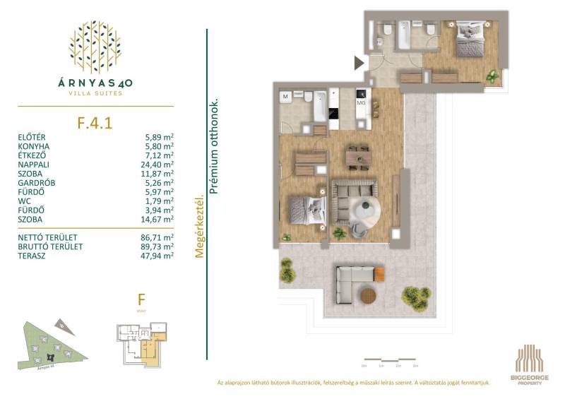 Projekt bemutatásaA PROJEKTRŐLA nagysikerű Németvölgyi Residence után újabb XII. kerületi fejlesztésünk épül a környéken, az Árnyas 40 Villa Suites. A két hektáros területen 6 db négyemeletes villaépület épül.LOKÁCIÓAz Árnyas út és a Budakeszi út kereszteződésében fekvő telken összesen 102 prémium minőségű lakást építünk, melyekből lélegzetelállító panoráma nyílik a városra és a budai hegyekre. Egyedülálló elhelyezkedése révén biztosítja a mindennapok kényelmét. A környéken elhelyezkedő, iskolák, óvodák, bevásárlóközpontok színvonalas szolgáltatásokat kínálnak az itt élőknek.A terület jó közlekedési adottságokkal rendelkezik, hiszen mind autóval, mind tömegközlekedéssel könnyedén megközelíthető, a közlekedési csomópontok 10-15 perc alatt elérhetőek.