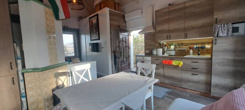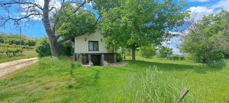 A Tóti-hegy lábánál kínálom eladásra ezt a 60-as években épült és 2015-ben a falakig (téglából) visszabontott épületet nagyméretű telekkel, mely teljes felújításon esett át. Ebbe beletartozik a víz- és villanyvezetékek, és teljes tető cseréje (cserépfedésű és látszógerendás), festés, vadonatúj konyha, padlózat, nyílászárók (fából), 5 cm-es dryvit szigetelés, vakolat. Az elosztását tekintve egy konyha-étkező-nappali, hálórész, fürdőszoba. Az épület alatt egy azonos méretű pince is található, mint a lakrész. A ház előtt és mögött is van egy-egy terasz.A 30 nm-es épület 4954 nm-es telken fekszik, ami egy helyrajzi számon van. Jelenleg 80%-ban szőlővel telepített, mely a tulajdonos által gondozott. Így azonnal lehet bővítésben is gondolkodni és akár egy 90 nm alapterületű ingatlanra átalakítani. A területen találunk még dió, alma, mandula és őszibarack fát is.A közművek közül árammal ( 3*20 Amper), vezetékes vízzel rendelkezik. Zárt emésztő van, ami körülbelül 3 köbméteres. A fűtése infra-panellel, cserépkályhával, de akár még hűtő-fűtő klímával is történhet. A pincében is helyeztek el egy hűtő-fűtő klímát.2025 októberében telepített 8 kw-os nappelem rendszer.A ház oldalában van még egy kis tároló is a kerti szerszámoknak és egy angol wc.A telek gyönyörű környezetben található, mely könnyen megközelíthető télen és nyáron egyaránt. A panoráma lenyűgöző a Tóti-hegyre, a Csobáncra, Hegyestűre, és Gulácsra.Kifüggesztés köteles!Amennyiben kérdése merül fel az ingatlannal kapcsolatban, vagy szeretné azt megtekinteni kérem keressen az alábbi elérhetőségek egyikén!