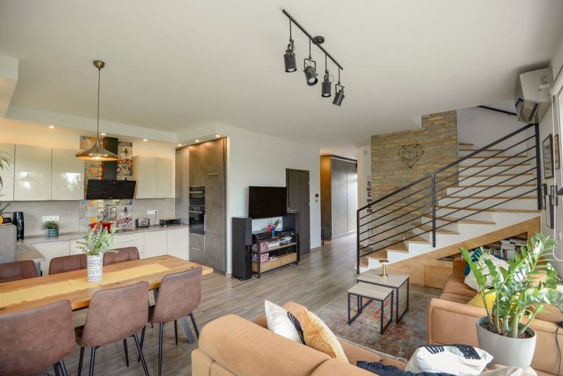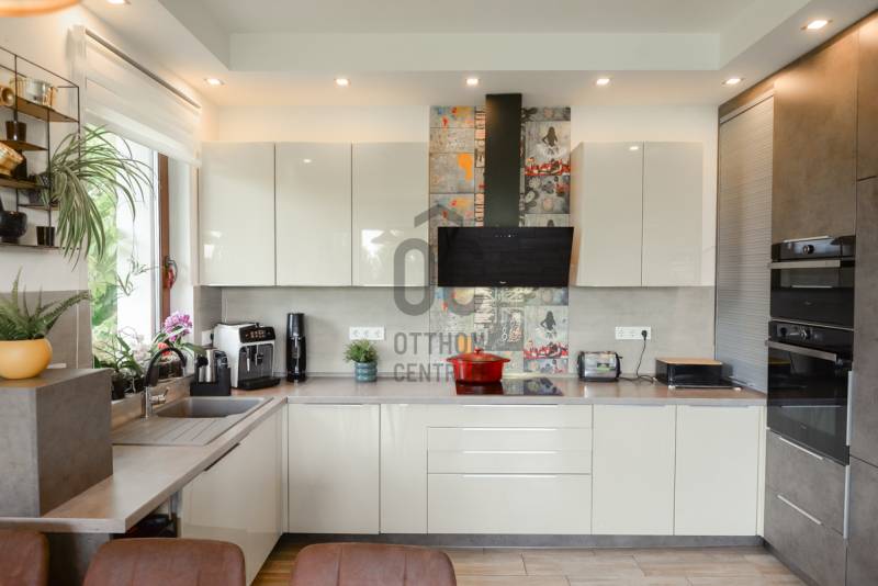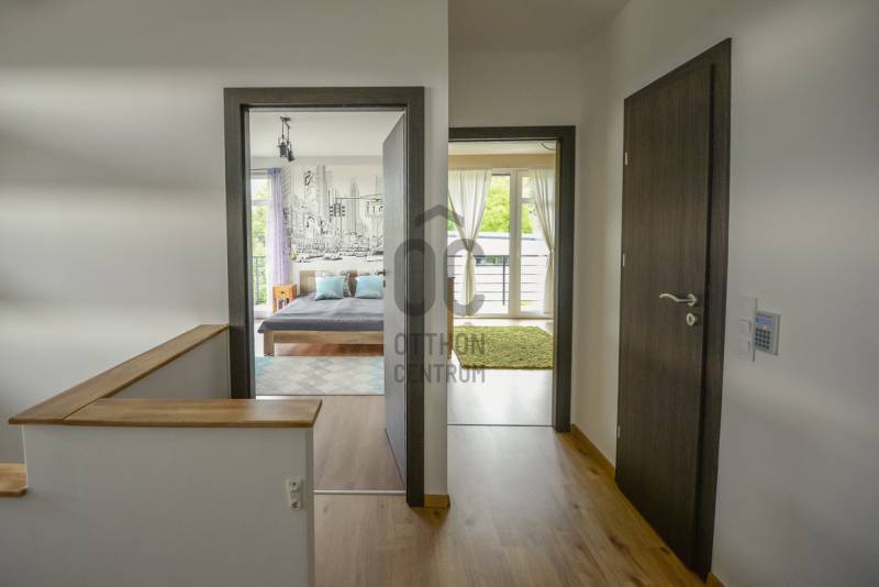 Eladásra kínálok egy 166 m²-es, 2 szintes, 5 szobás, örökpanorámás ikerházat Budapest III. kerületének exkluzív, hegyvidéki részén, a Harsánylejtő!Az ingatlanhoz tartozik egy 26 m²-es panorámás erkély, egy 20 m²-es fedett, részben üvegezett terasz, valamint egy közel 400m²-es, szépen gondozott, automata öntözőrendszerrel ellátott, kizárólagos használatú kert.Az ikerház másik felével csak a garázsok érintkeznek, így a lakótér teljesen elszeparált, a ház nyugodt, csendes fekvésű, nem utcafronti. A földszinten tágas, világos nappali, konyha-étkező, egy szoba, fürdőszoba, külön WC, kamra, valamint a kertkapcsolatos, fedett terasz található. Az emeleten négy hálószoba kapott helyet, emellett itt is van fürdőszoba (infraszaunával), külön WC és gardróbszoba. A felső szinten az erkélyről gyönyörű kilátás nyílik a Pilisre és az Aranyhegyre.A közelmúltban egy 6 kW-os, akkumulátoros napelemes rendszer került telepítésre, amely fedezi egy átlagos háztartás teljes villamosenergia-igényét. Ennek köszönhetően a gázcirkós fűtés kiváltható a hűtésre-fűtésre is alkalmas klímaberendezésekkel, így a fenntartási költségek jelentősen csökkenthetők.A környék rendezett, csendes, kiválóan alkalmas természetkedvelőknek és kisgyermekes családoknak. Gyalogosan 10 perc alatt elérhetők a Hármashatárhegy és a Pilis túraútvonalai, így az aktív kikapcsolódás, kutyasétáltatás is könnyedén megoldható. A 260-as busz megállója 300 méterre található, így a III. kerület központja és a belváros is könnyen elérhető tömegközlekedéssel.Ez az otthon minden szempontból a kényelmet és a luxust kínálja!Elhelyezkedés:A környék csendes és rendezett, tökéletes választás családok számára. A közeli buszmegállók és a HÉV könnyen elérhető, így a belváros gyorsan megközelíthető. A környéken boltok, iskolák és orvosi rendelők is megtalálhatóak. A gyönyörű zöld területek és kirándulási lehetőségek pedig még vonzóbbá teszik ezt az otthontTovábbi részletekért hívjon mielőbb!Egyedi igényekre szabott lakáshitelekkel állunk rendelkezésére. Bankfüggetlen Hitel Centrumunk az országban elérhető összes bank és hitelintézet ajánlatát versenyezteti az Ön számára díjmentesen.Munkatársaink nagy szakmai tapasztalattal várják Önt az előre egyeztetett időpontban akár a normál munkaidő után is.