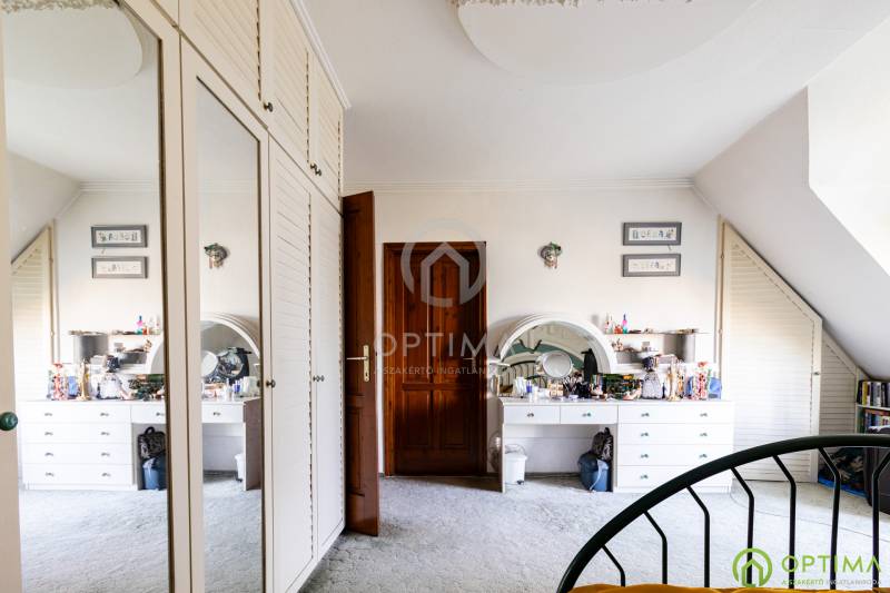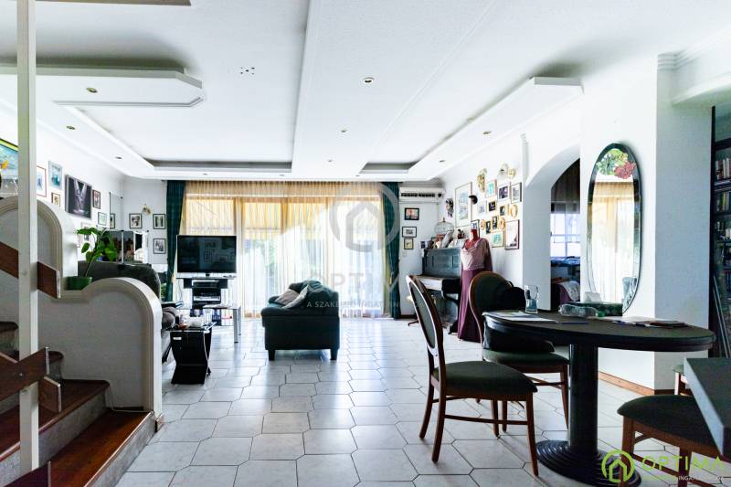 IKERHÁZFÉL SOROKSÁRON Budapest XXIII. kerületében, Soroksár-Újtelep kertvárosi részén kínálom megvételre ezt a 195 m2 alapterületű, 6 különnyíló szobás ikerházfelet. A ház 1993-ban épült, 4 szintes:FÖLDSZINT- itt található a garázs, jelenleg egy dolgozó szobának kialakított helyiség és egy fürdőszobaI. emelet- itt található az amerikai konyhás nappali és a hozzá tartozó nagy méretű teraszII. emeletitt található 3 különnyíló hálószoba, valamint egy tágas fürdőszobaTETŐTÉR- itt található egy negyedik hálószoba, illetve egy fürdőszoba előkészítéseA házhoz tartozó telek területe 340 m2, a ház elhelyezése pedig praktikusan úgy történt, hogy elöl és hátul is legyen kert.A ház melegen tartásáért a földszinten radiátorok felelnek, az emeleteken pedig padlófűtés.Az ingatlan közelében számos bolt, kikapcsolódásra alkalmas létesítmény, valamit sportolási lehetőség is megtalálható (Auchan, IKEA, játszótér, horgásztó, golfpálya, paintballpálya, botanikus kert). További részletekért és az ingatlan megtekintése miatt VÁROM HÍVÁSÁT akár hétvégén vagy az esti órákban egyaránt!