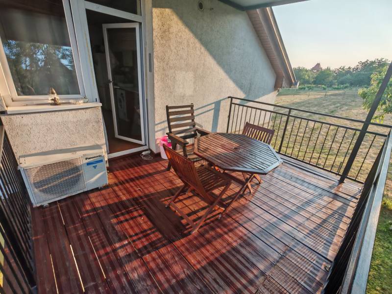 Csendes, forgalomtól mentes utcában , eladó egy kertkapcsolatos jó állapotú lakás, ami nyaralónak is kiválló ! Az ingatlan, amelyet most bemutatunk, egy 58 négyzetméteres lakás, amely minden igényt kielégít. A három szobás elrendezés ideális választás lehet akár fiatal párok, akár kis családok számára, akik a modern életstílust és a kényelmet keresik. A lakás kiváló állapotban van, ami azt jelenti, hogy Önnek semmilyen felújítással nem kell bajlódnia, így azonnal birtokba veheti. Az amerikai konyhás nappali tágas és világos, a beépített bútorok és szekrények pedig maximálisan kihasználják a teret, így minden szükséges dolog könnyen elérhetővé válik. A lakás hűtéséről klíma gondoskodik, míg a fűtés gáz cirkó rendszerrel működik, amely gazdaságos és hatékony megoldást kínál. A terasz, amely 12 négyzetméteres, tökéletes helyszín a reggeli kávézáshoz vagy a baráti összejövetelekhez. A kertkapcsolatos lakás lehetőséget biztosít arra, hogy a szabadban élvezhesse a nyugalmat és a friss levegőt, miközben a csendes környék biztosítja a zavartalan pihenést. A bútorok igény szerint maradnak. A kerti tároló pedig praktikus megoldást nyújt a kertrendezéshez szükséges eszközök tárolására. A környék ellátottsága kiváló, hiszen a közeli bolt, éttermek és szolgáltatások mindössze néhány perc sétára találhatók. A kitűnő közlekedés lehetőséget ad arra, hogy könnyedén elérje a város többi részét, legyen szó autós közlekedésről vagy tömegközlekedésről. A biztonságos és csendes környék ideális választás a fiatal felnőttek számára, akik szeretnék élvezni a vidéki élet nyugalmát, miközben a város közelsége is elérhető számukra. Ez a tehermentes ingatlan nem csupán egy lakás, hanem egy lehetőség arra, hogy egy igazán otthonos környezetben éljen. Ha felkeltettük érdeklődését, bátran keressen minket kérdéseivel vagy további információkkal kapcsolatban. Az ingatlanpiacon való tájékozódás során mi itt vagyunk, hogy segítsünk Önnek a legjobb döntés meghozatalában. Ne habozzon, mert egy ilyen kivételes lehetőség gyorsan elkel!