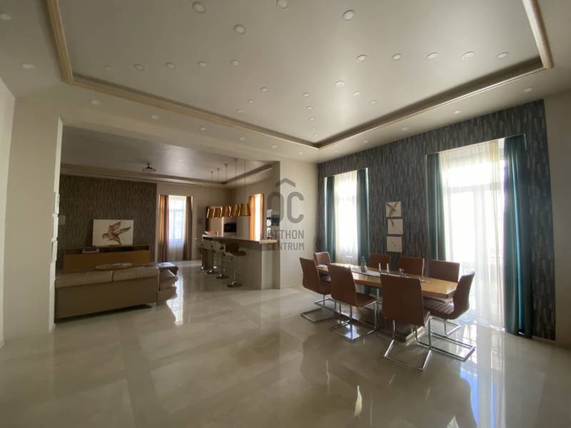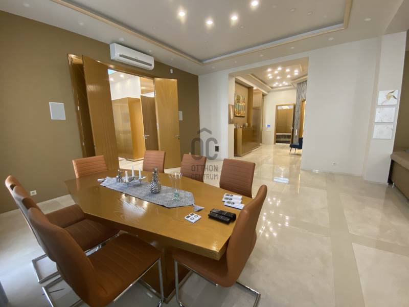 KIADÓ egy exkluzív lakás a Podmaniczky úton, néhány méterre a körúttól, a nyugati pályaudvar, Westend közelében.A lakás 168 m2-es, hatalmas amerikai-konyhás nappalival, 3 hálószobával és 3 fürdőszobával, saját szaunával, valamint egy kis erkéllyel rendelkezik.A lakás frissen, kifejezetten magas szinten felújított, cirkós padló és falfűtés, minden helyiség klimatizált.Teljes bútorzat és gépesítés, továbbá házimozi vetítő szolgálja a lakók kényelmét.A bérleti díj 2900 euro/hó.2 havi kaucióval és minimum 1 éves szerződéssel költözhető.