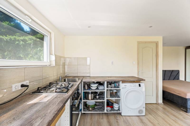 PANORÁMA, INTIMITÁS, FELÚJÍTOTT ÁLLAPOT - HÁZIKÓ A HEGYOLDALBAN!Tahitótfalu Tahi városrészének hegyoldalában, a Napsugár közben, csodás természeti környezetben ELADÓ egy bájos, panorámás kis ház, amely tökéletes választás azoknak, akik csendre, nyugalomra és valódi elszeparáltságra vágynak - anélkül, hogy lemondanának a komfortos lakhatásról!Az 1980-as években épült könnyűszerkezetes hétvégi ház néhány évvel ezelőtt teljeskörű felújításon esett át:- Teljes vízvezeték és elektromos hálózat csere- Új műanyag nyílászárók és bejárati ajtó- Szigetelt aljzatbeton és szigetelt tető (20 cm kőzetgyapot)- Falakon 10 cm dryvit szigetelés- Megújult ablakos, kádas fürdőszobaA fűtés jelenleg nincs beépítve, de rendelkezésre áll egy fatüzelésű kályha, amit csak be kell kötni, kémény előkészítve.Belső elrendezés:- Tágas tér, amerikai konyhás nappalival és hálórésszel- Felszerelt konyha- Teljes értékű fürdőszoba káddal, wc-vel- A lakótérhez kapcsolódik egy 20 nm-es intim terasz - igazi privát pihenőhelyTelek és környezet:- 962 nm lépcsőzetes kialakítású telek- 25%-os beépíthetőség (LK2 övezet) - bővíthető, állandó otthonná alakítható- Lejtős, de jól kihasználható természetközeli terület- Villany és víz bevezetve- Gáz az utcában elérhető- Csatorna nincsA telek alsó részében egy külön kis tároló is rendelkezésre áll.Az ingatlan tökéletes választás akár hétvégi háznak vagy állandó otthon kialakítására is, amire a felújított állapotnak köszönhetően nem kell költeni!A ház egyedülálló hangulatához hozzájárul a panoráma, zöldövezet, teljes nyugalom és intim tér!A ház tehermentes, azonnal birtokba vehető, remek ajánlat a piacon!További információkért és megtekintési szándékkal kapcsolatban várom hívását!