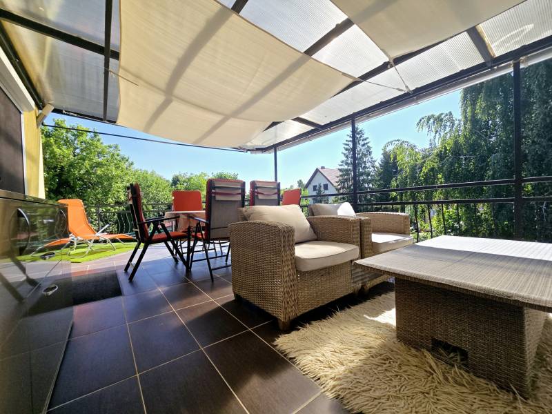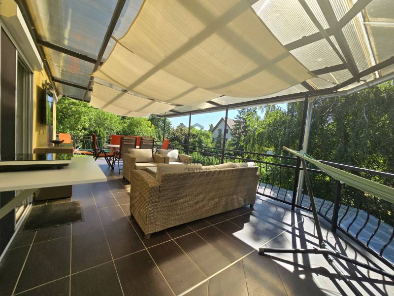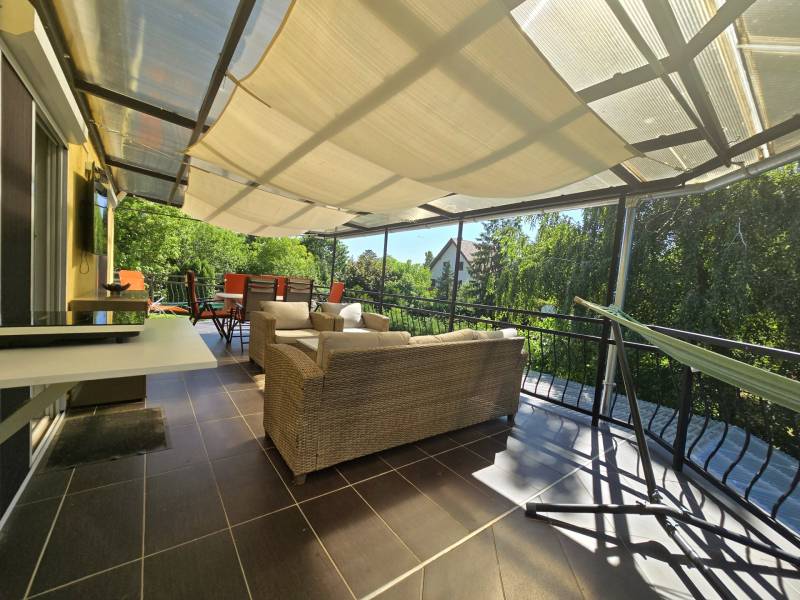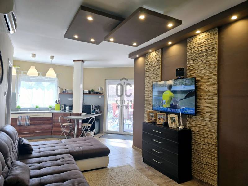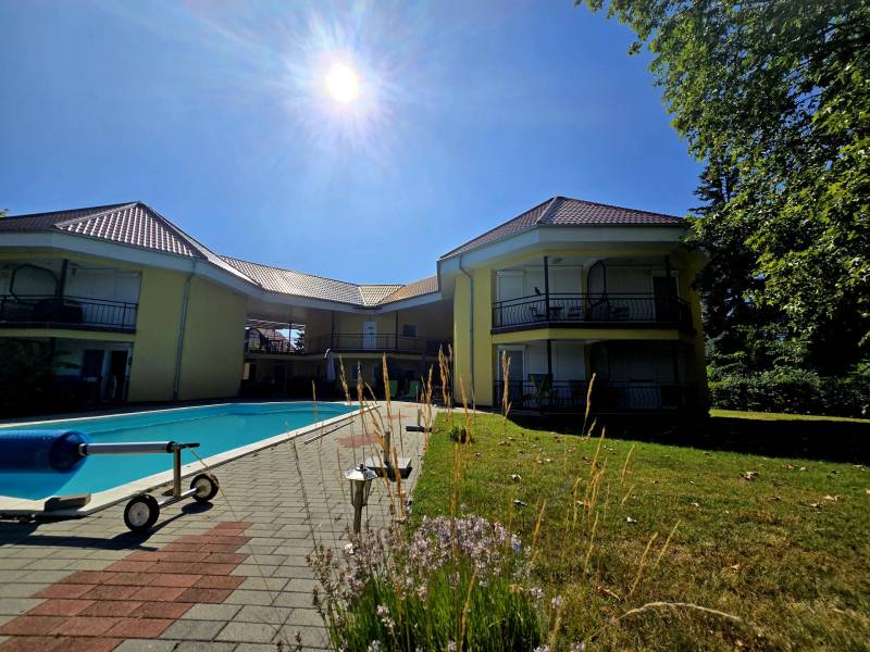 Szántódon, a déli part egyik legszebb, legnyugodtabb részén várja Önt ez a különleges nyaraló, ahol minden nap a szabadság és a nyugalom jegyében telhet. Itt nem kell kompromisszumot kötnie: a Balaton pár lépés, a kényelem pedig teljes.A mindössze néhány lakásos, kis lakóközösségben barátságos, jó társaság várja az új tulajdonost – itt valóban pihenésre lelhet.Lakótér: 2 különálló hálószoba és egy tágas, világos nappali biztosít kényelmes elhelyezkedést családnak, barátoknak. A 44 m²-es fedett terasz a nyári élet színtere –itt élvezheti a szabad levegőt esőben, napsütésben egyaránt.A hatalmas, fedett terasz előnyei:Ez a 44 m²-es fedett terasz szinte egy második nappaliként funkcionál – ideális a reggeli kávé elfogyasztásához, egy jó könyvvel való elvonuláshoz vagy esti vacsorákhoz barátokkal.Kényelmes étkező, pihenősarok is elfér rajta, ráadásul esőben és tűző napsütésben is használható.A közvetlen kertkapcsolatnak és a medencéhez vezető kijáratnak köszönhetően ez a tér valóban a nyári élet központja lehet. Gyermekek számára is biztonságos, árnyékos játszótérként szolgálhat.Ez a különleges méretű terasz nemcsak kényelmet, hanem értéknövelő luxust is ad az ingatlannak.Extrák:Saját kültéri medence a gondozott kertben – tökéletes a nyári felfrissüléshez.Fedett gépkocsibeálló a biztonságos parkolás érdekében.A berendezés prémium minőségű, minden darabja stílusos és időtálló – az ingatlan teljes berendezéssel együtt eladó, így csak a személyes holmiját kell hoznia, és már kezdődhet is a nyár.Gondozott kert, diszkrét növényzettelMinimális fenntartási költség, jól szervezett lakóközösség.Lokáció, ami ritka kincs:A Balaton partja, szabadstrand, éttermek és boltok csupán pár lépésre találhatók. Hajókikötő, kompátkelés, bicikliút pár percen belül – minden adott a kikapcsolódáshoz vagy aktív pihenéshez. Az ingatlan nem csupán egy nyaraló, hanem egy valódi balatoni életérzés – ahol a reggelt a teraszon, a napot a strandon, az estét pedig saját kertjében, a medence mellett töltheti el.Az ingatlan tehermentes, azonnal költözhető, teljes berendezéssel együtt eladó.Hívjon most – nézze meg személyesen, és engedje meg, hogy beleszeressen ebbe a különleges nyaralóba.