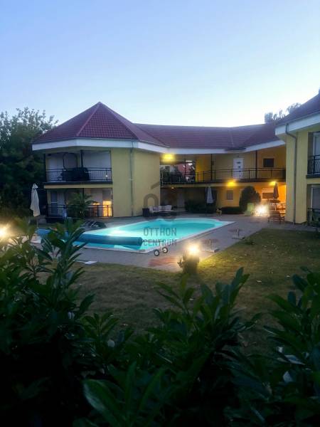 Szántódon, a déli part egyik legszebb, legnyugodtabb részén várja Önt ez a különleges nyaraló, ahol minden nap a szabadság és a nyugalom jegyében telhet. Itt nem kell kompromisszumot kötnie: a Balaton pár lépés, a kényelem pedig teljes.A mindössze néhány lakásos, kis lakóközösségben barátságos, jó társaság várja az új tulajdonost – itt valóban pihenésre lelhet.Lakótér: 2 különálló hálószoba és egy tágas, világos nappali biztosít kényelmes elhelyezkedést családnak, barátoknak. A 44 m²-es fedett terasz a nyári élet színtere –itt élvezheti a szabad levegőt esőben, napsütésben egyaránt.A hatalmas, fedett terasz előnyei:Ez a 44 m²-es fedett terasz szinte egy második nappaliként funkcionál – ideális a reggeli kávé elfogyasztásához, egy jó könyvvel való elvonuláshoz vagy esti vacsorákhoz barátokkal.Kényelmes étkező, pihenősarok is elfér rajta, ráadásul esőben és tűző napsütésben is használható.A közvetlen kertkapcsolatnak és a medencéhez vezető kijáratnak köszönhetően ez a tér valóban a nyári élet központja lehet. Gyermekek számára is biztonságos, árnyékos játszótérként szolgálhat.Ez a különleges méretű terasz nemcsak kényelmet, hanem értéknövelő luxust is ad az ingatlannak.Extrák:Saját kültéri medence a gondozott kertben – tökéletes a nyári felfrissüléshez.Fedett gépkocsibeálló a biztonságos parkolás érdekében.A berendezés prémium minőségű, minden darabja stílusos és időtálló – az ingatlan teljes berendezéssel együtt eladó, így csak a személyes holmiját kell hoznia, és már kezdődhet is a nyár.Gondozott kert, diszkrét növényzettelMinimális fenntartási költség, jól szervezett lakóközösség.Lokáció, ami ritka kincs:A Balaton partja, szabadstrand, éttermek és boltok csupán pár lépésre találhatók. Hajókikötő, kompátkelés, bicikliút pár percen belül – minden adott a kikapcsolódáshoz vagy aktív pihenéshez. Az ingatlan nem csupán egy nyaraló, hanem egy valódi balatoni életérzés – ahol a reggelt a teraszon, a napot a strandon, az estét pedig saját kertjében, a medence mellett töltheti el.Az ingatlan tehermentes, azonnal költözhető, teljes berendezéssel együtt eladó.Hívjon most – nézze meg személyesen, és engedje meg, hogy beleszeressen ebbe a különleges nyaralóba.