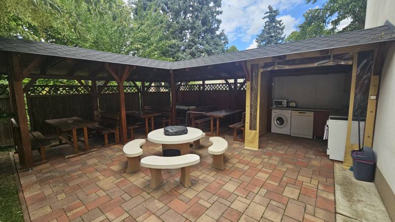 EXKLUZÍV BEFEKTETÉSI LEHETŐSÉG HAJDÚSZOBOSZLÓ KÖZPONTJÁBAN - LUXUS SZÁLLÁSKOMPLEXUM STABIL HOZAMMAL, TELJES FELSZERELTSÉGGEL!!!! A magyar turizmus egyik gyöngyszeme, Hajdúszoboszló, Európa-szerte ismert és elismert fürdőváros, ahol a gyógyturizmus, az élményfürdők és a folyamatosan növekvő belföldi-külföldi vendégforgalom találkozik. A város szívében, a kiemelt presztízsű Bánomkerti úton kínálunk eladásra egy teljes mértékben működő, kiváló állapotú, többfunkciós vendéglátóingatlant, amely tökéletes választás lehet üzleti befektetők, szállásadó vállalkozások vagy akár privát rezidenciát kereső vásárlók számára.Lokáció: A város legértékesebb övezetébenAz ingatlan elhelyezkedése páratlan: Hajdúszoboszló központjában, mégis csendes, nyugodt környezetben található. Néhány perc sétával elérhető a híres Mátyás király sétány, az Aqua-Palace élményfürdő mindössze 500méter távolságra, a Gyógyfürdő, valamint számos étterem, üzlet és turisztikai attrakció. A város az év minden szakaszában vonzza a látogatókat, ami egész éves telítettséget biztosít az itt működő szálláshelyek számára.Az ingatlan: prémium kialakítás, két épület, bővítési potenciállal1. Főépület (több mint 400 m²) – panzió, tulajdonosi lakrész, tetőterasz, szuterén apartmanJelenlegi funkció: panzió és hostel, vendégkörrel és működési múlttal9 különálló apartman, mindegyikben saját konyha és zuhanyzós fürdőszoba, ízlésesen bútorozott, azonnal kiadható állapotbanTulajdonosi lakrész: kb. 100 m²-es, 2 szobával, amerikai konyhás nappalival, kamrával, fürdőszobával (kád és zuhany is), külön WC-velA lakrész 3 különálló apartmanná alakítható, jelentősen növelve az ingatlan kihasználtságát és hozamát36 m²-es terasz és 12 m²-es erkély a vendégek pihenéséhezSzuterén szint: 45 m²-es különálló lakrész szaunával, saját konyhával és fürdőszobával – a főépületből és az udvarról is megközelíthetőA tetőn napelemrendszer (8 kW) segíti a költséghatékony működést2. Melléképület (3 szint) – vendégház, 5 apartmannalÖsszesen 5 apartman, mindegyikben külön konyha és fürdőszobaFöldszint és első emelet: 2-2 apartman, a tetőtérben 1 különálló egységAz emeleti apartmanokhoz tágas erkélyek tartoznak, vendégélmény szempontjából különösen értékesekKözös étkezőkonyha biztosítja a hosszabb tartózkodás kényelmétMűszaki tartalom és kényelmi extrákPadlófűtés a tulajdonosi lakásban, minden épületrészben modern gázkazános fűtés puffertartállyalKlímarendszer: minden apartmanban (kivéve a szuterént) hűtő-fűtő klíma gondoskodik a komfortos hőmérsékletrőlModern nyílászárók, mindenhol szúnyoghálóvalKamerarendszer az ingatlan teljes biztonságáért24 db Luxor Solar 330W napelem, Fronius inverterrel (8 kW) – akár teljes áramellátás biztosítottTérkövezett udvar, több beálló autóknak, fedett gépkocsi beállóAutomata öntözőrendszer, parkosított kertFedett udvari nyári konyha, bográcsozóhely – 12–20 fős társaságokat is kényelmesen kiszolgálEgyedi tervezésű tetőterasz – kiváló panoráma, prémium vendégélményÜzleti potenciál és megtérülésAz ingatlan egész évben üzemel, nem csupán szezonális működésű, így folyamatos bevételt biztosítJelenlegi kihasználtság alapján a megtérülési idő kb. 10 év, azonban a bővítési lehetőségek révén ez jelentősen rövidíthetőBejáratott vendégkör, ismert és kedvelt szálláshely a régióbanAz ingatlan tehermentes, jogilag rendezett, azonnal birtokba vehetőTeljes vendéglátáshoz szükséges felszereléssel együtt eladó – semmilyen további beruházást nem igényelKinek ajánljuk?Szállásadással foglalkozó cégeknek, akik rögtön működő rendszert keresnekMagánbefektetőknek, akik passzív jövedelmet biztosító, stabil hozamú ingatlant keresnekTársaságoknak, orvosi központoknak, tréningközpontnak, akik több lakóegységből álló komplexumot keresnekOlyan vásárlóknak, akik egy élhető lakóteret szeretnének működő üzleti háttérrel kombinálniLépjen a siker útjára Hajdúszoboszlón!Ez az ingatlan nem csupán egy panzió vagy vendégház, hanem egy kulcsrakész, jövedelmező vállalkozás a régió egyik legfrekventáltabb helyszínén. Ne hagyja ki ezt a különleges lehetőséget!További információért, alaprajzért vagy időpont egyeztetésért kérem, vegye fel velünk a kapcsolatot!