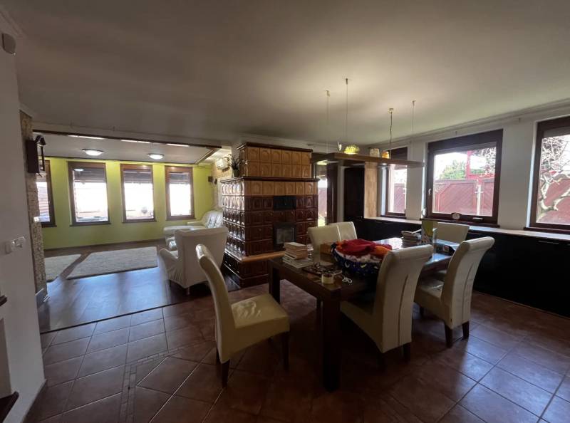 Hosszú távra kiadó igényes családi ház Tatán, kiváló infrastruktúrával!Ingatlan paraméterei:- Alapterület: 200 m²- Telek: 980 m² gondozott kert- Szobák száma: 4 hálószoba + dolgozószoba, nappali, gardrób, mosókonyha, dupla garázs- Fürdőszobák: 2 (WC-vel)Extrák: szauna, napelem rendszer, 20 m²-es fedett teraszFelszereltség:A ház bútorozva kerül kiadásra: mosógép, étkező garnitúra, modern konyhabútor, TV és ülőgarnitúra, beépített szekrények, ágyak stb.Fűtés/hűtés:- padlófűtés- cserépkályha- hűtő-fűtő klímákRezsi: kb. 40.000 Ft/hóBérleti díj: 600.000 Ft/hó + ÁFAElhelyezkedés:Tata csendes, rendezett részén.Tatabánya Ipari Park autóval kb. 15 perc alatt elérhető.További lehetőségek:Igény esetén heti takarítási és kertészeti szolgáltatás külön díj ellenében biztosítható.A tulajdonos nyitott cégek részére történő bérbeadásra is — korábban 4 igényes, gyári dolgozó bérelte a házat hosszú távon. Ideális többfős, kulturált céges bérlésre is.Hosszú távú bérlőt keresünk, az ingatlan azonnal költözhető.