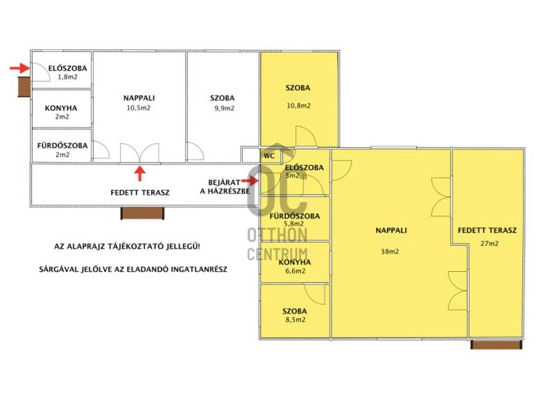 Siófok Aranypartján, a Balatontól mindössze 350 méterre kínálunk megvételre egy jó adottságú, házrészt, amely ideális választás nyaralónak, állandó otthonnak vagy befektetési célra egyaránt.Az ingatlan egy 620 m²-es telken helyezkedik el, bruttó alapterülete 114,5 m², amely a 101 m²-es lakótérből és a 27 m²-es terasz felének beszámításából adódik. A jelenlegi elrendezés szerint nappali, két hálószoba, előszoba, konyha, fürdőszoba és külön WC található benne, azonban igény szerint akár négy szobássá is alakítható. A házhoz egy 27 m²-es terasz, egy 12 m²-es tároló, valamint az udvarban 2–3 autó számára biztosított parkolási lehetőség tartozik.Az 1950-es években épült, masszív tégla szerkezetű ingatlan az évek során több korszerűsítésenis átesett, beleértve a tetőt, a víz- és villanyvezetékeket, valamint a csatornahálózatot. A fűtést kandalló és inverteres klíma biztosítja, amely hűtésre és fűtésre egyaránt alkalmas, a melegvíz-ellátás villanybojlerrel megoldott, a nyílászárók egy része már cserélve lett.Az ingatlan saját víz- és villanyórával rendelkezik.Az ingatlan jelenleg egy helyrajzi számon szerepel, nem megosztott, az osztatlan közös tulajdon kialakítása, az ügyvédi megosztás és a használati viszonyok rendezése adásvétel esetén biztosított.Extra lehetőségként a teljes ingatlan is megvásárolható 139 millió forint irányáron, ebben az esetben az összes bruttó alapterület 150,5 m². Elhelyezkedése kiváló, hiszen sétatávolságra található a Nagystrand, a belváros, éttermek és üzletek, továbbá a buszmegálló és a vasútállomás is könnyen elérhető, az M7-es autópályán keresztül Budapest körülbelül egy óra alatt megközelíthető. Megtekintésért és további információért várom hívását a hét bármely napján.