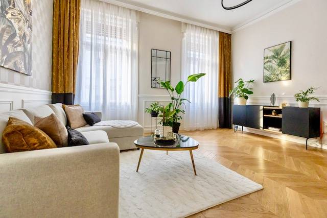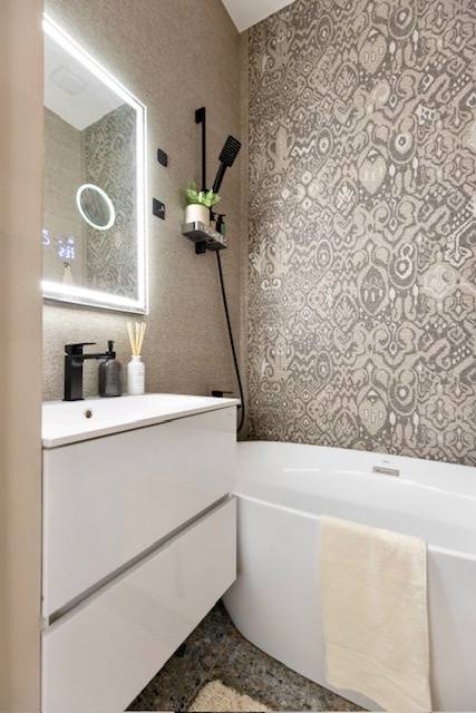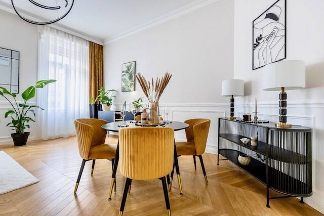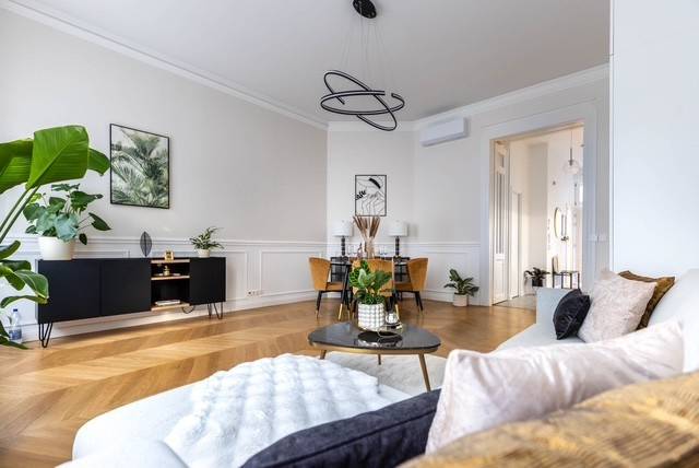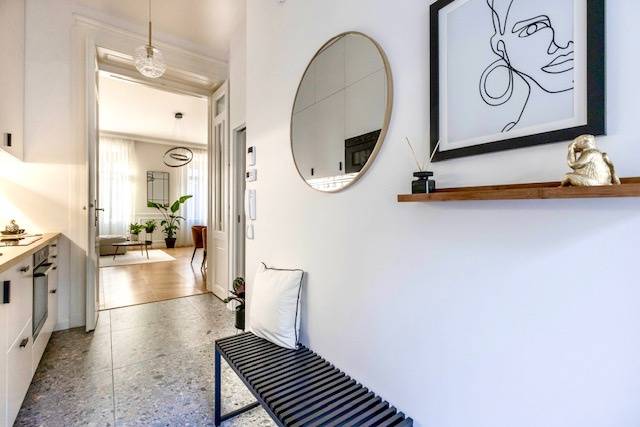 Különleges, felújított otthon a Belváros szívében – az V. kerületben, a Duna-part közelébenEladásra kínálunk egy igényesen felújított, egyedi stílusú lakást Budapest szívében, az V. kerületben. Az ingatlan a Duna-part, a Kossuth tér, a Vértanúk tere és a Szabadság tér közvetlen közelében található, kiváló elhelyezkedéssel.A klasszikus, lifttel ellátott, rendezett polgári társasház 30 lakásos, karbantartott állapotban van.A lakás a 4. emeleten található, ennek és a jó tájolásának köszönhetően rendkívül világos. Alapterülete 47 m².Főbb jellemzők:- Vadonatúj Chevron mintás tölgyfa parketta- Elektromos redőnyök és szúnyoghálók- Padlófűtés (új, korszerű gáz-cirkó rendszerrel)- Inverteres hűtő-fűtő klíma (H-tarifával)- Hőszigetelt nyílászárók- Beépített konyhabútor, teljes AEG gépesítéssel- Wellis fürdőszoba szabadon álló káddal és Smart tükörrel- Magas minőségű spanyol csempék- Skandináv és art deco bútorzat- Okos otthon világításrendszer előkészítése- Érintőkapcsolók- Praktikus, beépített tárolási megoldások- RiasztórendszerAz ingatlan azonnal költözhető, tehermentes, rugalmasan megtekinthető.Ideális választás saját otthonnak és befektetésnek egyaránt.További információért keressen bizalommal!Urban Serenity in the City CenterUnique, Renovated Home in the Heart of Downtown – District V, Near the DanubeWe are offering for sale a tastefully renovated apartment with a unique style in the heart of Budapest, District V. Located just steps from the Danube River, Kossuth Square, Vértanúk Square, and Liberty Square, this property boasts an exceptional central location.The apartment is situated in a classic, well-maintained residential building with an elevator, consisting of 30 units. Positioned on the 4th floor, and thanks to its favorable orientation, the property enjoys abundant natural light throughout. The total floor area is 47 m².Key features:- Brand new Chevron-patterned oak parquet flooring- Electric shutters and insect screens- Underfloor heating with a new, modern gas boiler system- Inverter air conditioning (heating & cooling) with H-rate compatibility- Insulated windows- Fully equipped custom kitchen with AEG appliances- Wellis bathroom with a freestanding bathtub and Smart mirror- High-quality Spanish tiles- Scandinavian and Art Deco furniture- Smart home lighting system pre-installed- Touch-sensitive light switches- Clever built-in storage solutions- Alarm systemThe apartment is immediately available, free of encumbrances, and can be viewed flexibly.An ideal choice for both a private residence and a smart investment.For more information or to arrange a viewing, feel free to contact us!