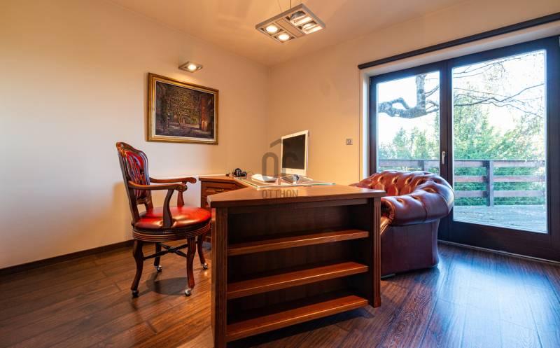 Ez a kivételes, 441 nm-es használt családi ház Nagykovácsiban, Pest vármegyében, a legnagyobb kényelmet és eleganciát kínálja egy exkluzív otthonra vágyó család számára. Az ingatlan egyedülálló tervezésének köszönhetően a tágas nappali és a világos, nagy belmagasságú szobák mind a modern életstílus, mind a családi együttlétek tökéletes színterévé válnak illetve szinten található még egy számos lehetőséggel bíró, liftes helyiség ami lehet akár garázs vagy hobby szoba is . A házban megtalálható 8 szoba és 3 fürdőszoba nemcsak a családtagok, hanem a vendégek kényelmét is szolgálja, így ideális választás lehet befektetési céllal is. A prémium kivitelezésű ingatlan számos modern kényelmi funkcióval rendelkezik, mint például beépített bútorok és szekrények, LED hangulatvilágítás, komplett grillező és kemence a teraszon stb. A házhoz tartozó három garázs férőhely biztosítja a járművek kényelmes tárolását, míg a rendezett 1504nm-es kert és az automata öntözőrendszer gondoskodik arról, hogy a zöld terület mindig ápolt és szép legyen. A kertben található medence és szauna pedig a pihenés és a kikapcsolódás tökéletes helyszínét nyújtja. Az ingatlan csendes, felkapott környéken helyezkedik el, amely nemcsak a nyugalom szigete, hanem a biztonságos életvitel szempontjából is ideális választás. A környék kiváló közlekedési lehetőségekkel rendelkezik, így az autóval közlekedők számára könnyen elérhetőek a főbb útvonalak, míg a tömegközlekedés is jól kiépített, lehetővé téve a gyors és kényelmes bejutást a fővárosba. A közelben található iskolák, boltok és egyéb szolgáltatások pedig tovább növelik az ingatlan vonzerejét. Ez a modern, kandallós, világos és tágas családi ház nemcsak egy otthon, hanem egy életstílus megtestesítője. Az ingatlan állapota kiváló, fűtése gáz (cirko) rendszerrel, hűtése klímával megoldott. A biztonsági ajtó és a videókaputelefon, valamint a riasztórendszer garantálja a lakók biztonságát és nyugalmát. A jelenleg divatos de elcsépelt stílustól eltérő, egyedi megjelenést és valóban élhető, kimondottan harmonikus otthont keresőket azonnal elcsábítja a telekről és magából a házból élvezhető meghitt nyugalom, intimitás és elképesztő panoráma, a mögöttünk lévő erdő közelsége pedig azonnal lenyűgözi.Alapvető műszaki tartalom: :-konyha,beépített Siemens gépekkel-beépített szekrények-központi porszívó-WOLF fűtési rendszer melegvíz kollektorokkal, fa tüzelésű kazán a rendszeren belül–kandalló-5 tonnás auto emelő lift-SLV márkájú LED-es lámpatestek az egész házban-elektromosan mozgatható tetőtéri ablakok és azokon szintén elektromos mozgatású alumínium redőnyök-táv felügyeleti riasztó és kamera rendszer-konditerem, infra szauna Ha Ön is szeretne részese lenni ennek az egyedi lehetőségnek, ne habozzon feltenni kérdéseit, hiszen bármilyen információval szívesen állok rendelkezésére!