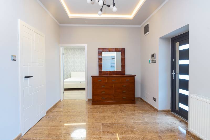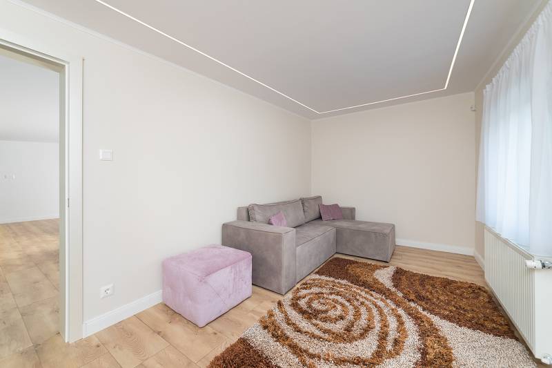 A XVII. kerületben Rákoscsabán, 2052 nm-es telken (amely további épülettel bővíthető), 2024-ben teljeskörűen felújított, magas minőségű alapanyagok és műszaki megoldásokkal kivitelezett 116nm alapterületű családi otthon eladó.Az ingatlan a XVII. kerületében, Rákosmente Rákoscsaba városrészében található kertvárosi jellegű környezetben. Az ingatlan közelében az ingatlanhoz hasonló típusú és korú, valamint újabb építésű ingatlanok, családi házak találhatók, ahol a teljes infrastruktúra elérhető és a bevásárlási lehetőségek megoldottak. Megközelítés – tömegközlekedéssel: a 169E jelzésű BKK autóbuszjáratok Pöröly utca - megállójától az ingatlan 1-2 perces séta távolságra található. Gépjárművel a Kerepesi út – Keresztúri út – Pesti út – Péceli út – Battonya utca útvonalon is elérhető az ingatlan, az M0 autópálya pár perces autózással megközelíthető. Parkolás az ingatlan előtt, valamint a telek területen, térkövezett, nyitott gépkocsi beállón több autó számára lehetséges.Az eredeti lakóépület valamikor a XX. század elején épült, majd 2024-ben gyakorlatilag újra építették. Alapozás: 1 méteres beton aláalapozás, és 25 cm-es aljzat beton. Az alsó födém 50 cm-es betonfödém. A függőleges teherhordó falazat B30-as tégla, a külső 20 cm-es kőzetgyapot szigeteléssel ellátott, vakolt, színezett, a falak impregnáltak. A fa ácsszerkezetű összetett nyereg- és félnyereg tető betoncserép héjalású, a födém 20 cm-es kőzetgyapottal szigetelt. A lakásba a villany (3x32A), gáz-, víz-, csatorna közmű bekötött. A külső nyílászárók műanyag tok- és szárnyszerkezetű ablakok, 3 rtg. üvegezéssel, redőnnyel felszerelve, a bejárati ajtó 3 ponton záródó biztonsági ajtó, a beltéri ajtók prémium minőségű ajtók. A belső homlokzat felületképzése simított vakolat festéssel, műgyantával, a vizes helyiségek festettek és csempések is. A padló- és falburkolatok magas igényszintet tükröznek, szerkezeti és esztétikai hibáktól mentesek. Álmennyezet, rejtett világítással, kialakított. A fűtést és a használati melegvíz ellátást új, Bosch kondenzációs kazán biztosítja, a hőleadás radiátorokkal és padlófűtésen keresztül történik. A lakás klimatizált (hűtő-fűtő klímák), az ingatlan riasztó- és kamera rendszerrel felszerelt, a konyha gépesített.Az építési övezet 60 méter mélységet elérő vagy meghaladó telkein legfeljebb 2 db főrendeltetésű épület helyezhető el, az épületekben annyi önálló rendeltetési egység helyezhető el, hogy minden önálló rendeltetési egységre 300 m2 telekterület jusson, de a telken legfeljebb 2 önálló rendeltetési egység létesíthető.Az ingatlan tehermentes, azonnal birtokba vehető.