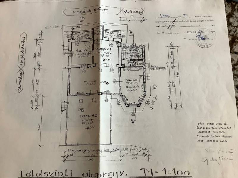 A Tettyén, Pécs kedvelt részén, a Zerge utca tetején eladó egy 5 szobás, 2 hatalmas teraszos, klímás, duplagarázsos családi ház. Az ingatlan kellemes, jó levegőjű környezetben található, akár két család számára is barátságos otthon lehet.....Helyiségek:dupla garázs, 5 szoba, 2 fürdőszoba, 1 konyha, 2 tároló, gépészeti helyiség, 2 nagy terasz, 25 m2-es borospinceAz ingatlan téglaépítésű, fa nyílászárókkal. A fűtést gázkazán végzi, a melegvizet 2 villanybojler készíti.Az emeleti szobák parkettásak a többi helyiség kerámia burkolatú.A duplagarázs kapui távirányításúak, a borospince remek klimájú.A tulajdonviszonyok rendezettek, tehermentes. Az alaprajzokon kisebb módosítások történtek.