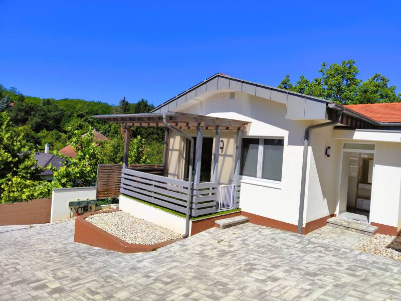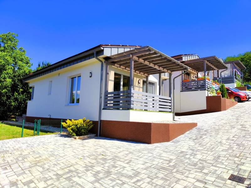 A sorház első háznak lehet boldog tulajdonosa!Ízlésesen kialakított azonnal költözhető!Hévíz zöldövezeti csendes részén található ez a dombos délkeleti fekvésű panorámás telek, ezen épült a három, 75 m2 hasznos alapterületű, egyszintes lakóépület. A hozzá tartozó udvarrészben kerti tároló is helyet kapott.Az ingatlanban található: előszoba, nappali – étkező – konyha, háztartási helyiség, zuhanyzó/WC, közlekedő, 3 db hálószoba, fürdőkádas fürdőszoba WC-vel.A nagy nappalihoz kertkapcsolatos épített terasz tartozik, zöld területtel, automata locsolórendszerrel.A kültéri 2 db gépkocsi beálló viacolor burkolattal készült.Műanyag nyílászárók modern, 3 rétegű üvegezéssel, elektromos redőnyökkel, szúnyoghálókkal felszereltek.A homlokzat 20 cm vastag, EPS hőszigetelő rendszert kapott.Minden helyiségben hőszivattyús hűtés-fűtés rendszer került kialakításra, külön hőfokszabályzással, 6 KW-os napelem rendszert is kapott az ingatlan szaldós elszámolással.A hűtést illetve a fűtést minden helyiségben bárhonnan külön telefonról lehet irányítani, úgyszintén a napelemes rendszert is!Kerámia burkolattal ellátott helyiségeknél padlófűtés növeli a komfortérzetet.Héjvédelmi riasztással ellátva.A modern építészeti megoldásoknak és a napelemnek köszönhetően, nagyon alacsony a fenntartási költsėg!Hívjon, hogy az öné lehessen!Az adatok kizárólag a megbízóink által rendelkezésünkre bocsátott információkon alapulnak.Fentiekre tekintettel, az adatok teljességéért, helyességéért és aktualitásáért nem vállalunk felelősséget.Az árváltozás, adatmódosítás és közbeni értékesítés jogát fenntartjuk, mindezekért jogi felelősséget nem áll módunkban vállalni.