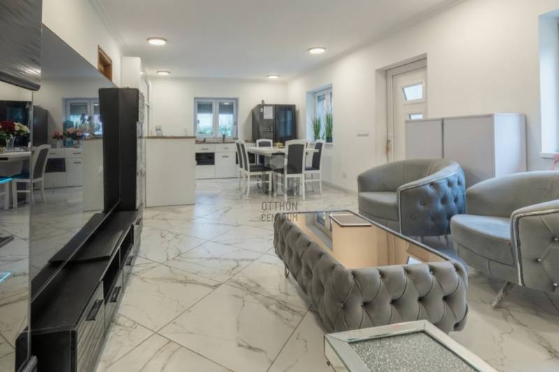 Új tulajdonosát keresi egy jó adottságokkal rendelkező 4 szobás családi ház Monor központi részén.Amennyiben Budapest agglomerációjában keres házat családja számára és nem szeretne a felújítással bajlódni, ezt feltétlenül nézze meg!KÖRNYÉK és KÖZLEKEDÉS:- Monor dinamikusan fejlődő kisváros Pest megyében, - Budapesttől mindössze 30 km-re, autóval (20 perc) és vonattal (30 perc) is könnyen megközelíthető. - Családbarát környezet, jó infrastruktúra, bevásárlási lehetőségek és egészségügyi ellátás mind megtalálhatók a településen. - Számos bölcsőde, óvoda és iskola működik a városban, így a kisgyermekes családok számára ideális infrastruktúrával rendelkezik.- A nyugodt, zöldövezeti hangulat és a főváros közelsége ideális választássá teszik azok számára, akik vidéki nyugalomra, de mégis gyors elérhetőségre vágynak.- A bevásárlási lehetőségként a Spar, Lidl, autóval 10 perces távolságra vannak.AMIT A HÁZRÓL TUDNI KELL:- 1990-ben épült, tégla falazatú, sátortetős, egy szintes épület.- 2025-ben történt teljes körű felújítása: gépészet, vízvezeték, csatornák, elektromos vezetékek, nyílászárók, szaniterek, burkolatok, festés.- A ház 10 centis szigetelést kapott és a teljes tetőzet cseréje is megtörtént.- Hasznos alapterülete 110,8 m2, a hozzá tartozó telek mérete 504 m2.- A kertben kiépített kamerarendszer gondoskodik a ház biztonságáról.- Az épület déli tájolású, körbenapozott, szobái tágasak és világosak.- Elosztása: amerikai konyhás nappali és étkező, 3 hálószoba, közlekedő, fürdőszoba-wc, kamra, külön wc.- Gyermekes családok számára jól átgondolt, élhető terekkel rendelkezik.- A fűtést légkondicionáló, a meleg vizet Ariston villanybojler biztosítja.- Az este hangulatosan megvilágított udvar közepes méreténél fogva könnyen karban tartható. - Nagy része térkövezve lett, a többi része füvesítéssel és virágok ültetésével még szebbé tehető.- A kerítés is teljes felújításon esett át, a ház színével harmonizáló festést kapott.- Az udvarra gépkocsival széles, elektromos kapun keresztül lehet beállni.- A házhoz egy fedett beálló tartozik és még 2 autó parkolása oldható meg az udvaron.- A beépített konyhabútorok és a hozzá tartozó gépesítés a vételár részét képezik.FINANSZÍROZÁSBAN ONLINE ÜGYINTÉZÉSSEL IS SEGÍTÜNK- Többszörösen díjnyertes irodánk hitelszakértői 20 év tapasztalattal várják.- Bank-független hitelcenterünk díjmentesen versenyezteti a bankok ajánlatait.- Egyedi, személyre szabott hitelkonstrukciók.- Fogyasztóbarát hitelek, babaváró támogatás, teljes körű CSOK PLUSZ és OTTHON START ügyintézés.- Egyeztetéssel akár munkaidőn kívül is.Ha békés és biztonságos településen szeretne élni, ahol barátságos a közösség és felkeltette érdeklődését a ház, kérem hívjon bizalommal!