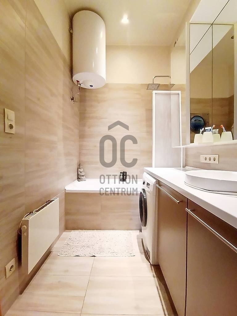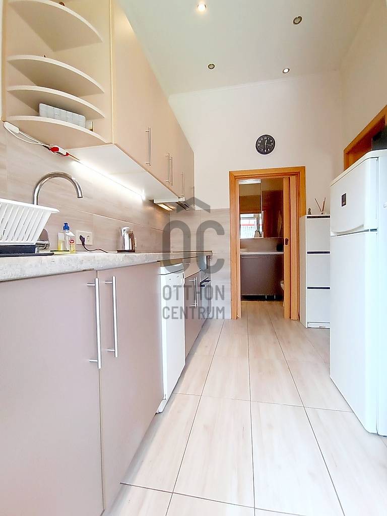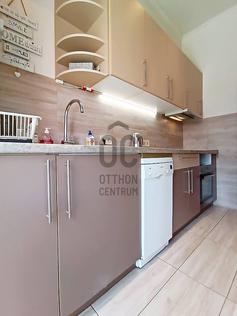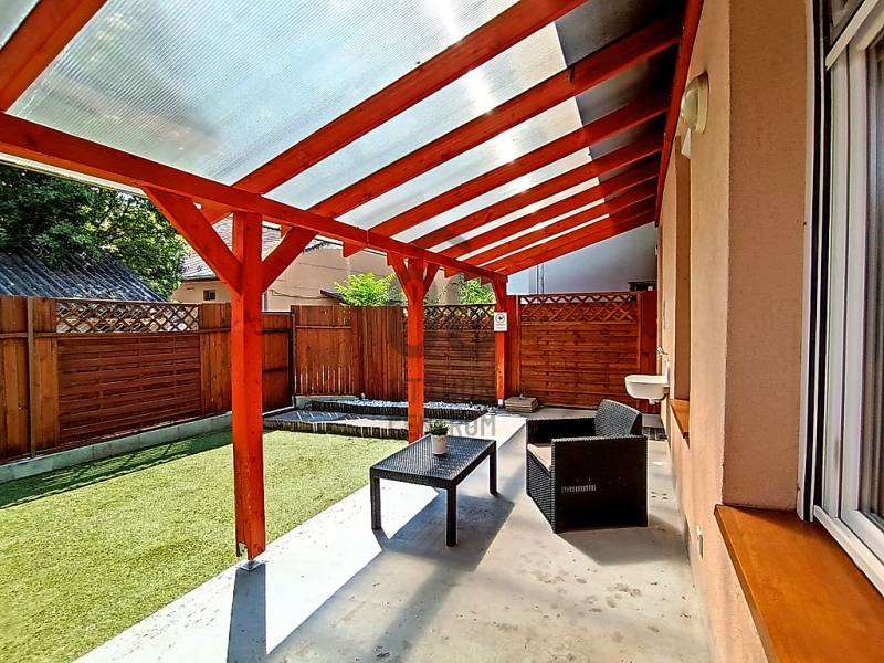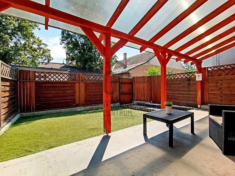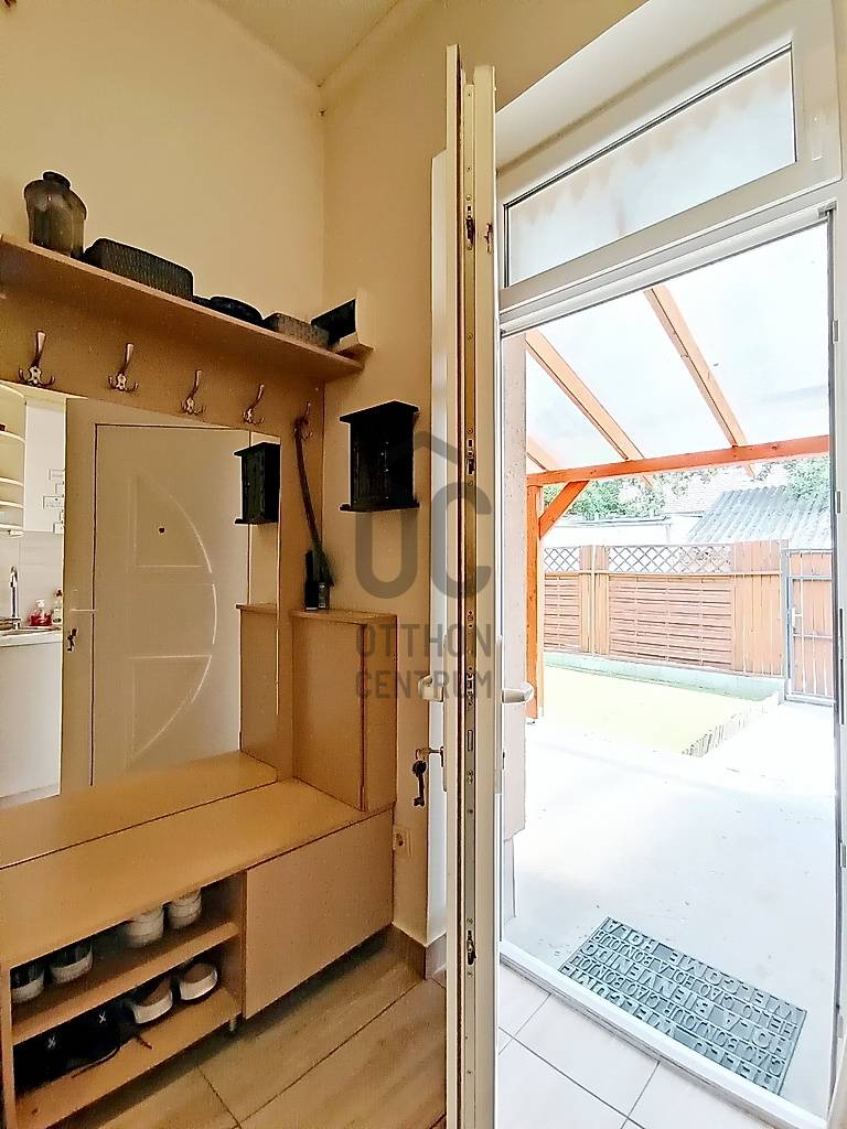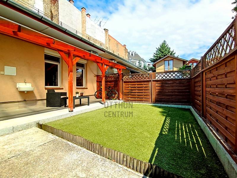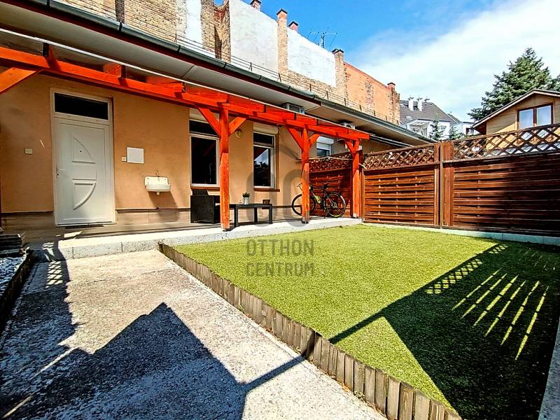 Egy reggeli kávézás / egy kellemes ebéd / egy kis délutáni szieszta / egy meghitt, gyertyafényes vacsora / egy sütögetős grill party a családdal, barátokkal a teraszon…??? Vagy esetleg egy kis pihenés / napozás / medencézés / kertészkedés a teljesen leválasztott, kizárólagos használatú saját udvaron...??? És mind ez egy csendes, nyugodt kertvárosi környezetben lévő, kívül-belül esztétikailag és műszakilag is pár évvel ezelőtt felújított, társasházi lakással a háttérben... Higgye el, hogy ez egyáltalán nem lehetetlen !!! :) Ha mindig is erre az életérzésre vágyott, akkor ne is keresgéljen / nézelődjön tovább, mert szerintem biztos, hogy megtalálta !!! :)IV., Újpest kertvárosi részén - a városközponttól is mindösszesen csak 2-3 perc sétatávolságra - a Lőrinc utcában kínálok eladásra egy kis létszámú, kulturált (csendes, barátságos, segítőkész) lakóközösséggel büszkélkedő, tégla építésű társasházban lévő, a mai kor igényeinek megfelelően kialakított, bútorozott és gépesített, 5 cm vastagságú külső (dryvit) hőszigeteléssel és egy energiatakarékos hűtő-fűtő klímaberendezéssel is tovább komfortosított (rezsicsökkentett), pár évvel ezelőtt esztétikailag és műszakilag is felújított és azóta is megkímélt állapotban lévő, keleti tájolású, közvetlen napsütötte (rendkívül világos), az előtte lévő 16 m2 nagyságú - teljes alapterületében fényáteresztő, UV szűrős polikarbonát tetővel fedett - teraszára és a további kb. 30-35 m2 nagyságú, saját, kizárólagos használatú, teljes mértékben elszeparált zöld kertjére / járdás udvarára panorámás - a földhivatali bejegyzés / tulajdoni lap szerint 35 m2 alapterülettel - de a nappaliban megépített 5 m2-es fekvőgalériának köszönhetően, a valóságban és használhatóságában is már 40 m2-es (!!!) alapterülettel büszkélkedő öröklakást, amelyhez még egy önálló, zárható, porszáraz, kb. 8 m2 alapterületű, téglaépítésű udvari tároló és egy kb. 15 m2-es fedett gépkocsi beállóhely is hozzá tartozik !!! :)A lakás - acélbetétes, több ponton záródó - felső világító ablakos biztonsági ajtaján belépve a praktikusan bútorozott, 2 m2-es előszobát is magába foglaló, teljes egészében beépített bútorokkal és gépesítéssel is (munkalapba épített 4 zónás elektromos főzőlap + külön beépített elektromos sütő, mikrohullámú sütő, teleszkópos (ki-be húzható) pára-, és szagelszívó berendezés, mosogatógép és fagyasztós hűtőszekrény) ellátott, kényelmes méretű (5 m2-es) konyhába érkezünk - ahonnan közvetlenül akár a 22 m2 alapterületű + 5 m2-es „hálószobaként funkcionáló” fekvőgalériával is büszkélkedő, laminált parkettával burkolt, két óriási üvegfelületű - közvetlen napsütötte / rendkívül világos - több légkamrás, hő-, és hangszigetelt műanyag ablakkal, parapetes kivezetésű gázkonvektorral, nagyon jól és kényelmesen bútorozható nappaliba vagy akár a kényelmesen / komfortosan kialakított, teljesen bebútorozott és egy automata mosógéppel is begépesített, egy nagy méretű fürdőkádnak és egy nagyon kényelmesen használható WC-nek is (az összesen 6 m2 alapterületén belül) praktikus helyet biztosító - egy a falra szerelt elektromos melegítő panellal külön befűthető - fürdőszobába jutunk át !!!Az ingatlanban történő közüzemi fogyasztások mérése és számlázása természetesen mind-mind saját mérőórákon keresztül, \"amennyit fogyaszt, annyit fizet\" alapon történik !!! A társasházon / lakáson belül a telekommunikációs szolgáltatások (nagy felbontású kábeltévé, nagy sebességű internetkapcsolat) is természetesen mind-mind igénybe vehető !!!A közös költség (a felújítási alappal, a szemétszállítási díjjal, a lakásbiztosítási díjjal és a társasház kezelés díjával együtt) mindösszesen csak 17.600,- Ft havonta !!!Az ingatlan IV., Újpest központjától (3-as metró, 28 féle (nappali és éjszakai) BKK-, és több távolsági (Volán) buszjárat, a 12-14-es villamosjárat, óvodák, bölcsőde, általános iskolák, gimnáziumok, orvosi rendelő, gyógyszertárak, önkormányzati hivatalok, vásárcsarnok (újpesti piac), kulturális központ (színház), élelmiszer boltok, posta és bankfiókok… kellemes sétával is mindösszesen csak 2-3 percnyire(!) található !!!Személygépjárművel rendelkezőknek a parkolás a társasház zárt udvarán belül kialakított, fedett (tetővel rendelkező) - ehhez a lakáshoz közvetlenül hozzátartozó, saját kizárólagos használatban lévő, kb. 15 m2 alapterületű - gépkocsi beállóhelyen, további gépjármű(vek) esetén közvetlenül a társasház előtti részen, vagy a környező közterületeken (utcákban) ingyenesen megoldott !!!Egyedülállóknak, életkezdőknek, újrakezdőknek, akár még a családalapító fiatal pároknak vagy - a társasház / lakás az akadálymentessége miatt - az idősebb korosztálynak is nagyon jó szívvel ajánlom !!! Ez a lakás a kiváló lokációjának, a folyamatosan karbantartott, jó esztétikai és műszaki állapotának, a rendkívül gyors és nagyon kedvező feltételekkel történő kiadhatóságának köszönhetően a befektetési céllal vásárlóknak is egyaránt kitűnő választás lehet !!!A lakás önálló helyrajzi számon nyilvántartott társasházi albetéttel, rendezett 1/1-es tulajdonjogi viszonnyal és teljes tehermentességgel rendelkezik! A lakás birtokba adása - az adásvételi szerződés megkötésétől számítva - maximum 2-3 hónapon belül biztosított!Éljen a lehetőséggel, jöjjön el és nézze meg személyesen, győződjön meg mindenről a saját szemével, kérdezzen bátran, beszélgessünk róla, tudjon meg mindent és szeressen bele… ;)Az