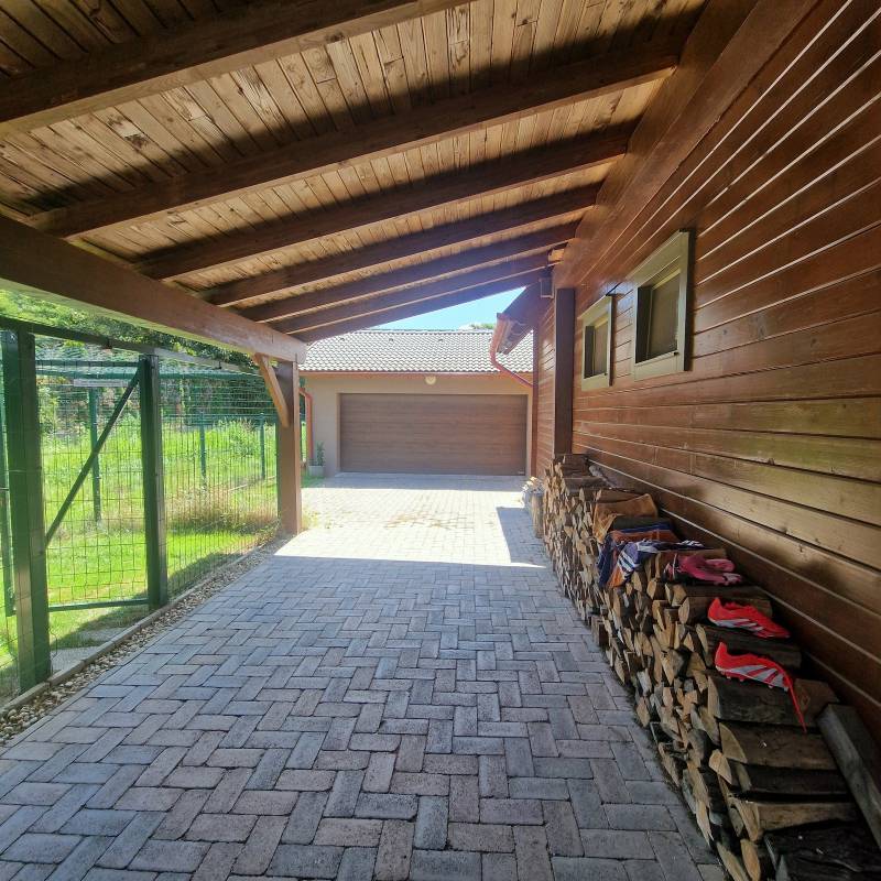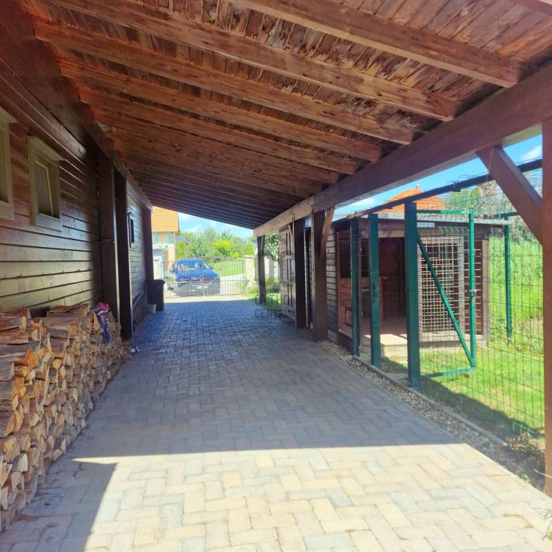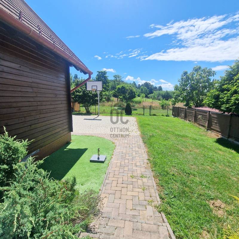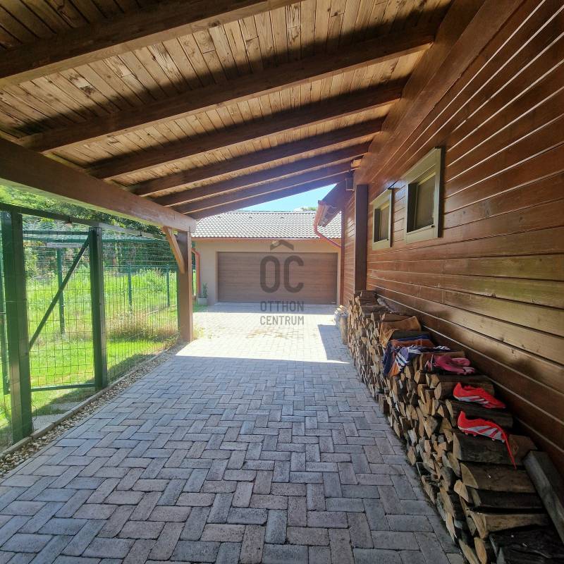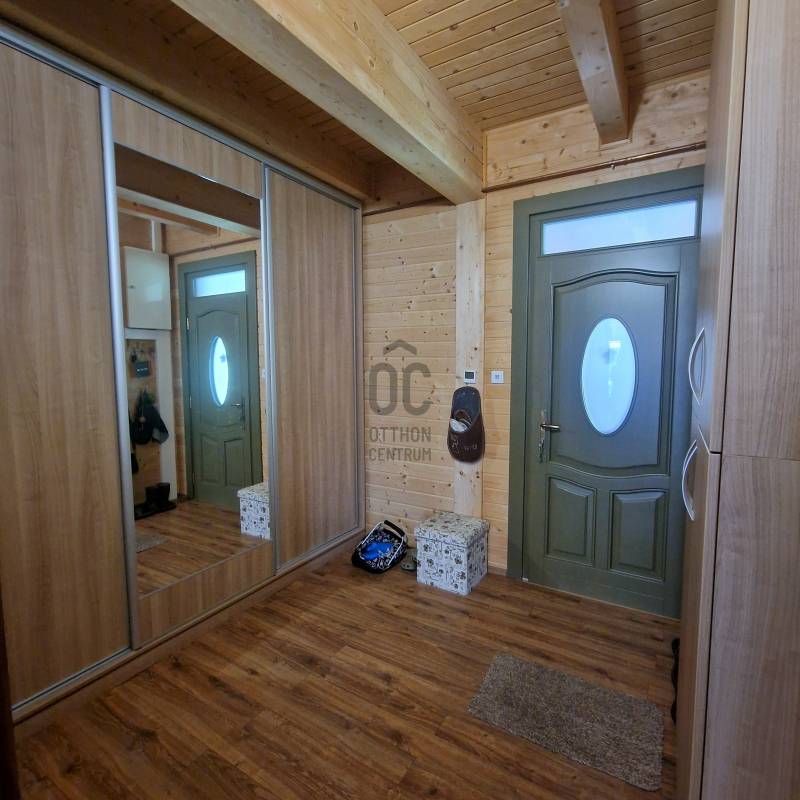 Szerelem első látásra? Zalaegerszegtől mindössze 9 km-re, Nagypáli lakóparkjában eladóvá vált egy 792 nm-es teleken elhelyezkedő 2006-ban épült, 138 nm-es, két szintes gerendaház! A ház minőségi anyagokból és képzett szakemberek által épült. Az ott lakók kényelmét a földszinten egy igényes, gépekkel felszerelt konyha-étkező+kamra, tágas nappali, 2 szoba, fürdőszoba, külön mellékhelyiség kézmosóval, mosókonyha, előszoba, fedett terasz, míg az emeleten 1szoba +1 lakosztály (fürdőszoba, gardrób, hálószoba) és egy különálló gardrób biztosítja.A tágas nappaliból lehet kimenni a fedett teraszra, ami egyetlen mozdulattal téliesíthető. Ide egy ajtón át is be lehet jönni az udvarról, és ha van házi kedvenc, akkor ő is tudja használni a rajta lévő kutya ajtót.A házon és házban található összes nyílászáró, illetve a ház belső burkolata 7 éve került felújításra, ahogy a kőrisfából készült egyedi konyhabútor és terasz is.A nyílászárók Remmers (német) felületkezelt lucfenyőből készültek olíva zöld színben. Az ablakokon redőny és szúnyogháló is található.A család autói a dupla, fűthető garázsban pihennek, ahová egy fedett kocsibeállón keresztül lehet bejutni. Így eső esetén is szárazak maradhatunk.A garázs tetején 35 db napelem található, melyek biztosítják, hogy a fűtésszámla garantáltan alacsony maradjon. A garázs mögött található még egy fedett pihenő és grillező sarok.A házban télen a meleget infrafűtés biztosítja, de a nappaliban egy fa tüzelésű kandalló is található.Az udvaron található még egy normál méretű lebetonozott kosárpalánk, a sport szerelmeseinek.A házi kedvencnek pedig külön lakosztálya van az udvaron, egy félig fedett kennel, hőszigetelt kutyaházzal és füvesített, zárt, zárható kifutóval.A terület három oldalról 3D-és kerítéssel van körbe kerítve, az utca frontról pedig kő és kovácsoltvas kerítés nyújt biztonságot. Az autók által használt kapu elektromos, ahogy a garázs kapuja is.A házon kiépített kamera rendszer található.Az ingatlan per és tehermentes, teljes kifizetést követően új tulajdonosa nevére kerülhet. A kormány által nyújtott új 3%-os kedvezményes hitel igénybe vehető az ingatlanra.Amennyiben az ingatlan felkeltette érdeklődést keressen bizalommal!