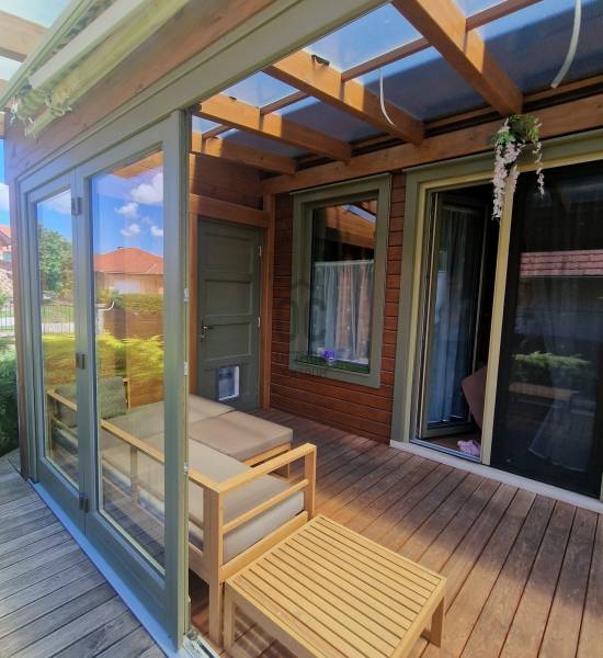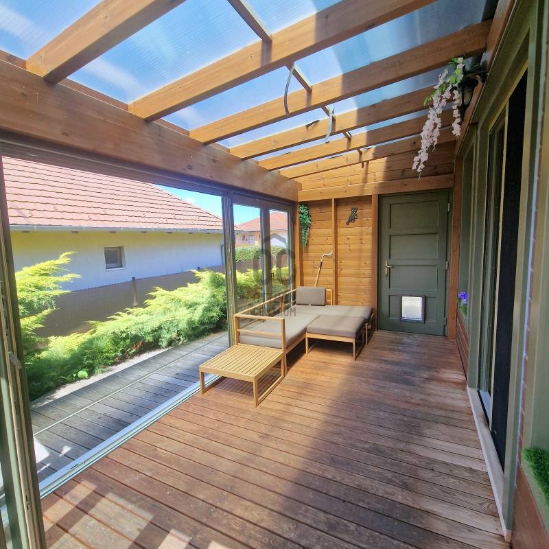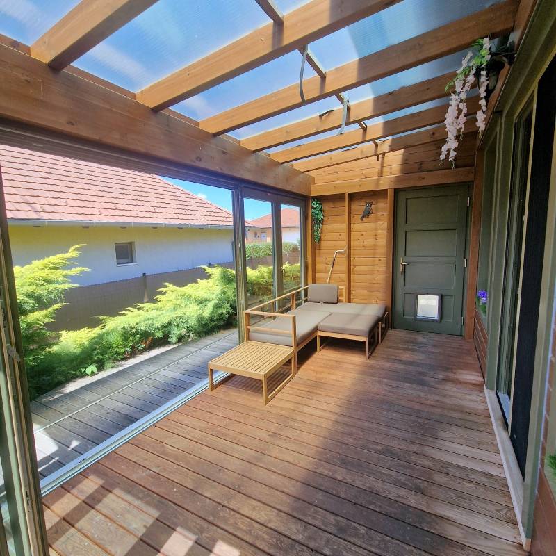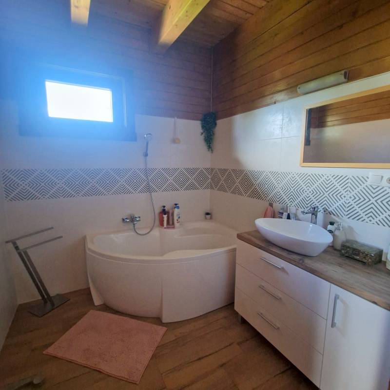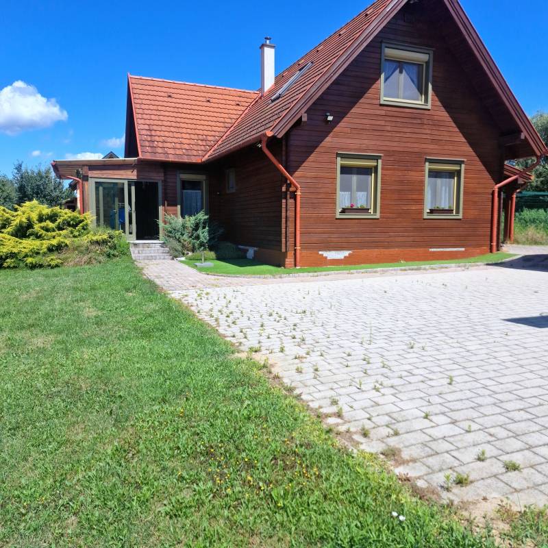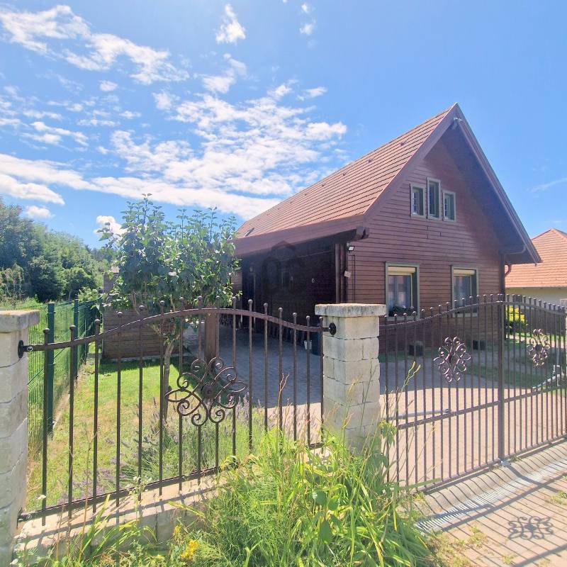 Szerelem első látásra? Zalaegerszegtől mindössze 9 km-re, Nagypáli lakóparkjában eladóvá vált egy 792 nm-es teleken elhelyezkedő 2006-ban épült, 138 nm-es, két szintes gerendaház! A ház minőségi anyagokból és képzett szakemberek által épült. Az ott lakók kényelmét a földszinten egy igényes, gépekkel felszerelt konyha-étkező+kamra, tágas nappali, 2 szoba, fürdőszoba, külön mellékhelyiség kézmosóval, mosókonyha, előszoba, fedett terasz, míg az emeleten 1szoba +1 lakosztály (fürdőszoba, gardrób, hálószoba) és egy különálló gardrób biztosítja.A tágas nappaliból lehet kimenni a fedett teraszra, ami egyetlen mozdulattal téliesíthető. Ide egy ajtón át is be lehet jönni az udvarról, és ha van házi kedvenc, akkor ő is tudja használni a rajta lévő kutya ajtót.A házon és házban található összes nyílászáró, illetve a ház belső burkolata 7 éve került felújításra, ahogy a kőrisfából készült egyedi konyhabútor és terasz is.A nyílászárók Remmers (német) felületkezelt lucfenyőből készültek olíva zöld színben. Az ablakokon redőny és szúnyogháló is található.A család autói a dupla, fűthető garázsban pihennek, ahová egy fedett kocsibeállón keresztül lehet bejutni. Így eső esetén is szárazak maradhatunk.A garázs tetején 35 db napelem található, melyek biztosítják, hogy a fűtésszámla garantáltan alacsony maradjon. A garázs mögött található még egy fedett pihenő és grillező sarok.A házban télen a meleget infrafűtés biztosítja, de a nappaliban egy fa tüzelésű kandalló is található.Az udvaron található még egy normál méretű lebetonozott kosárpalánk, a sport szerelmeseinek.A házi kedvencnek pedig külön lakosztálya van az udvaron, egy félig fedett kennel, hőszigetelt kutyaházzal és füvesített, zárt, zárható kifutóval.A terület három oldalról 3D-és kerítéssel van körbe kerítve, az utca frontról pedig kő és kovácsoltvas kerítés nyújt biztonságot. Az autók által használt kapu elektromos, ahogy a garázs kapuja is.A házon kiépített kamera rendszer található.Az ingatlan per és tehermentes, teljes kifizetést követően új tulajdonosa nevére kerülhet. A kormány által nyújtott új 3%-os kedvezményes hitel igénybe vehető az ingatlanra.Amennyiben az ingatlan felkeltette érdeklődést keressen bizalommal!
