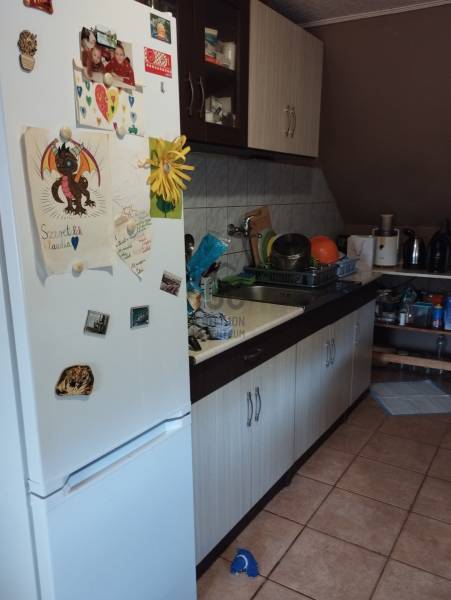 BAKONYNÁNA MESÉS IDILLI ZSÁKFALU A BAKONY HEGYEINEK ÖLELÉSÉBENA RÓMAI-FÜRDŐ az ország legvadregényesebb sziklaszorosa.A Gaja-patak Bakonynána közelében 2 km hosszú, mély és meredek falú szurdokvölgyet vájt a sziklába, mely csodás látványt nyújt az arrafelé kirándulóknak. A leszakadó magas mészkőfalak között a Római-fürdőként ismert vízesésben ömlik alá a víz.A vízesés az országos kéktúra útvonalán található. A Gaja-völgyön az országos \"kék sáv\" jelzés vezet végig.Ebben a megnyugtató, tiszta, csendes környezetben kínálok megvételre egy kétszintes családi házat.A 129nm-es épület egy 2990nm-es telken áll, néhány melléképület társaságában.Nyárikonyha, garázs, műhely, tároló, állattartásra alkalmas ólak.Bővizű ásott kút biztosítja a kert növényeinek és a számos termő gyümölcsfának, hogy legmelegebb napokon se száradhassanak ki. A megtermelt zöldségeket a ház alatti és az egyik melléképület alatti pincében is lehet tárolni. A kert végében patak csordogál.A ház helységei 2 szinten kaptak helyet, jelenleg közös bejárattal, de a szintek elválaszhatóak.A fűtés egy, a ház alatti pincében álló vegyestüzelésű kazánnal működik, radiátoros hőleadással, a melegvizet villanybojler adja.A nyílászárók egy részét hőszigetelt műanyagra cserélték. A külső falak nagy része is szigetelve van.A földszinti lakrész felújításra vár, ezért a belső elosztása újragondolható. Ha valódi családi fészket szeretne, vagy befektetne egy jól jövedelmező vendégházba, ne habozzon, keressen a megadott elérhetőségen, egyeztessünk és örömmel körbevezetem az ingatlanon!JÖJJÖN EL, NÉZZÜK MEG EGYÜTT ÉS TEGYEN AJÁNLATOT!Az ingatlanról videót is készítettünk, ami megtekinthető az Otthon Centrum weboldalán, a H505215 regisztrációs számra keresve.Irodánk teljes körű HITEL-, BABAVÁRÓ és CSOK ügyintézéssel, biztosítással, energetikai tanúsítvány készítésével, valamint megbízható ügyvédi háttérrel segíti Ügyfeleit.eladó / Bakonynána / családi ház / kétgenerációs / patak /