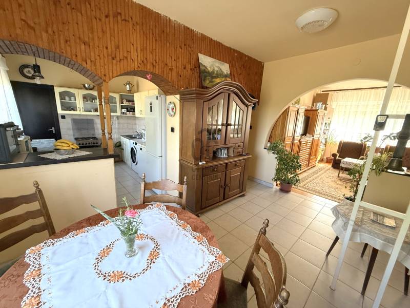 Nagytarcsán csendes mellékutcában kínálunk megvásárlása egy 796 nm-es összközműves telken álló alápincézett+ két lakószintes önálló családi házat. A földszinten a fedett teraszról nyílik a bejárat, ahol a tágas, csupa napfény nappali (kelet-délkeleti tájolású), kényelmes méretű étkező, konyha, kamra, egy nagy hálószoba, fürdőszoba és egy külön mellékhelyiség került kialakításra. Modern, mai igényeknek megfelelő belső elosztás, tágas, rendkívül világos helyiségek. Az emeletre kényelmes lépcső vezet, ahol két nagy hálószoba (egyik teraszos), és egy nagy kádas fürdőszoba kapott helyet. A fürdőszoba a két hálószoba között helyezkedik el, mindkét szobából közvetlenül megközelíthető. A lakóépület alatt több helyiségből álló nagy szuterén található, itt garázs, kazánház, tárolók vannak, a lakásba a belső lépcsőn juthatunk fel. A ház 2000-ben nyerte el mai formáját, ekkor lett bővítve a tetőtérrel. A nyílászárók cserélve lettek korszerű műanyag ablakokra redőnyökkel és szúnyoghálóval felszerelve, a fűtést egy korszerű turbós kombi cirkó biztosítja, de rendelkezésre áll egy szinte új vegyes tüzelésű kazán is. A tetőt beton cserép fedi, a kertben 3 autó számára fedett beálló lett kialakítva. A környék csendes, csupa zöld, buszmegálló, bevásárlási lehetőség pár perces sétával elérhető.