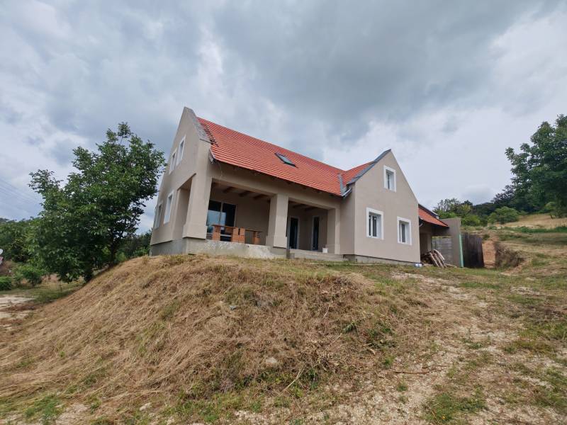 Cserszegtomaj csendes, forgalomtól mentes zöldövezeti részén az erdő mellett eladó egy újépítésü családi ház. Az épül kétszintes, amerikai konyha nappalival + 5 hálóval 3 fürdőszobával gardróbbal mosókonyhával kamrával rendelkezik.A 2700 négyzetméteres telken nettó 252 m²-es családi ház, amely ideális a nagycsaládosoknakA Balaton keszthelyi partszakaszától és Hévíztől néhány percre található.A tagolt nyeregtetős ház korszerű technológiákkal, energiatakarékosmegoldásokkal és modern nyílászárókkal elektromos redőnyökkel felszereltA földszinten akadálymentes szobák és fürdő is található. A tágas amerikai konyhás nappalihozfedett terasz kapcsolódik.Összesen 5 kényelmes hálószoba biztosítja a lakók kényelmét.A földszinti helyiségek átgondolt elrendezésűek: az előtéren keresztül jutunk be, ahonnan aközlekedő nyílik, balra a nappali–étkező–konyha zóna, kamrával.A hálórészben két szoba, fürdőszoba, tároló és közösségi tér kapott helyet. Innen indul azemeletre vezető, még kiépítésre váró lépcső.Fent további két hálószoba, 2 fürdőszoba, mosókonyha és közlekedő található.A házhoz két terasz tartozik: az egyik fedett, nappaliból nyíló, panorámás a környékre a másik pedig privát, az egyikföldszinti szobából elérhető.Az ingatlan jelenleg 75%-os készültségű.A kivitelezési tervek szauna és jacuzzi beépítését is lehetővé teszik.a teljes burkolat rendelkezésre állnak, amit egy jó izlésü szakmáját szerető lakberendező keze munkáját dícséri. A 2700 m²-es, enyhén lejtős telken 79% zöldfelület található, ideális kertészkedésre, pihenésrevagy játékra. A ház mögött zárt, belső átriumos udvar alakítható ki.A kert végleges kialakítása még földmunkát igényel.A tervek szerint a telek alján 5 gépkocsi számára alkalmas parkoló létesül.További információkért kérem hívjon!