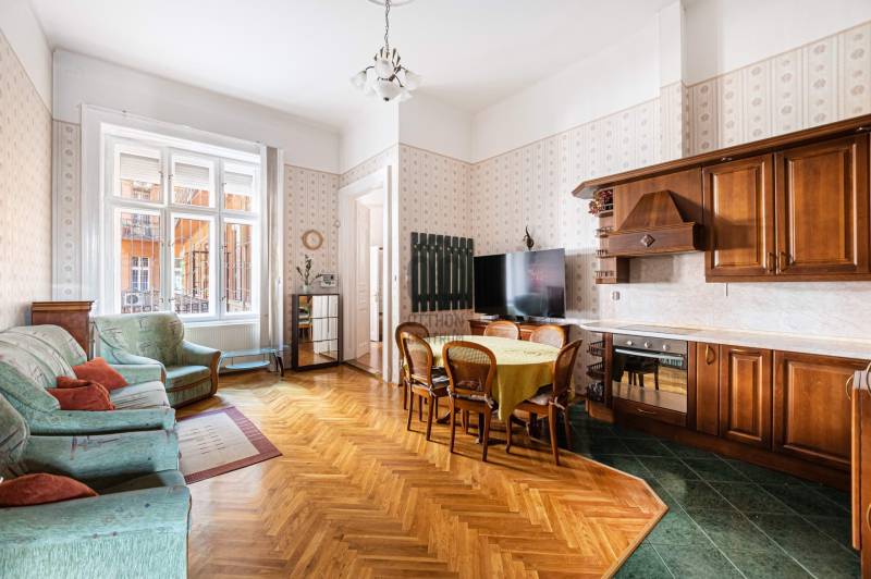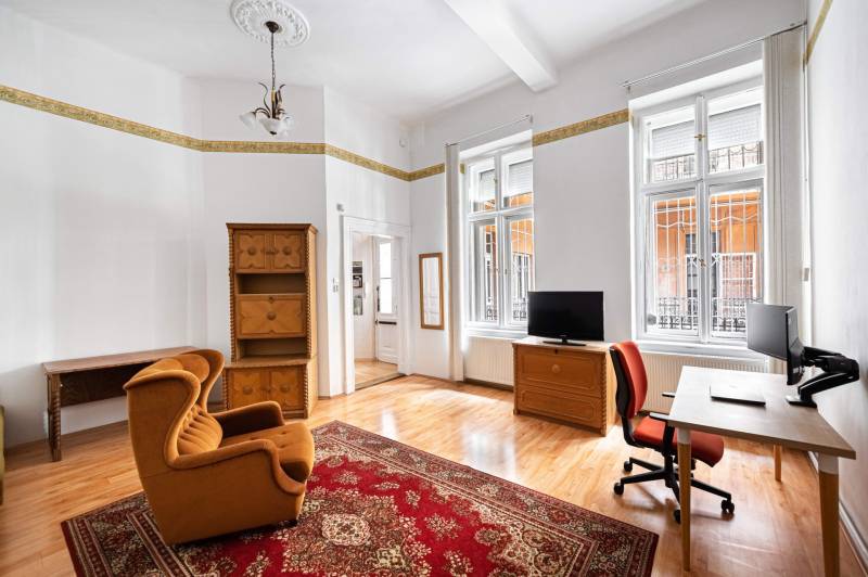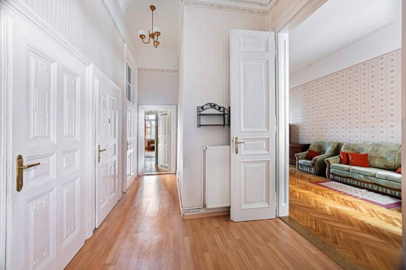 Budapest VIII. kerületében, a Semmelweis Klinikák és Corvin-negyed között, egy 1898-ban épült, karbantartott ház 1. emeletén, DNY-i tájolású, 127 m² alapterületű, 3 szobás+ 1 félszobás, amerikai konyhás nappalis, ablakos spájzzal, tágas fürdőszobával és külön WC-vel rendelkező, világos, jó állapotú lakás eladó. MIÉRT ez a lakás?• Tágas, jól alakítható elrendezés – 127 m²-enKülön nyíló szobák, tágas nappali, ablakos spájz és dupla mellékhelyiség – ideális nagycsaládosoknak, egyetemistáknak, de akár több külön lakás is kialakítható.• Műszakilag rendben, lakható Az alapvető rendszerek (gáz, víz, villany) már cserélve lettek, a lakás műszakilag stabil, így költözhető állapotban van. Az esztétikai frissítés már csak ízlés kérdése.• Lift van – első emeleti kényelemRitka kombináció: kényelmes megközelíthetőség és patinás, 19. századi ház klasszikus hangulattal.• Történelmi épület – különleges atmoszféraA Thék Endre bútorgyáros által építtetett ház nemcsak egy lakóépület, hanem egy darab iparművészeti történelem, különleges építészeti részletekkel.• Prémium lokáció – minden perceken belülKlinikák és Corvin-negyed között: M3 metró, 4-6-os villamos, egyetemek, Duna-part, éttermek, kávézók, mozi – minden, ami a kényelmes városi élethez kell.• Befektetésnek is kiválóAz egyetemek közelsége miatt hosszú távon is biztos bérlői keresletre számíthatsz – akár szobánkénti kiadásra, akár külön lakrészek kialakítására is van lehetőség.• Stabil, gondos társasházLift, jó állapotú tető és pince, már felújított vezetékek, megtakarításból tervezett villamoshálózat-korszerűsítés – nyugodt, előrelátó lakóközösség.HÁZA társasház 1898-ban épült, klasszikus építészeti stílusa hangulatos, időtálló megjelenést kölcsönöz az épületnek. A külső és belső homlokzat átlagos állapotú, a közös terek – különösen a lépcsőház – rendezettek és folyamatosan karbantartottak. A házban lift is található, ami tovább növeli a lakók kényelmét.A közös költség havi 38.200 Ft, amely tartalmazza a szokásos fenntartási díjakat és a felújítási alapot is. A gáz-, víz- és villanyszolgáltatás egyedi mérés alapján fizetendő.A társasház pénzügyileg stabil, megtakarítással rendelkezik. Az elmúlt években számos korszerűsítésre került sor, többek között megtörtént a gáz- és víz alapvezetékek teljes cseréje. A tető és a pince is jó állapotban van. A következő cél a teljes elektromos hálózat korszerűsítése, amelyhez a közösség jelenleg is takarékoskodik – várhatóan három éven belül ez a beruházás is megvalósul.ÉPÜLET TÖRTÉNETEAz Üllői út 66. szám alatti épületegyüttes egy különleges ipartörténeti emlék, amely a 20. század elején épült Thék Endre bútorgyáros megbízásából. Thék Endre a korszak egyik legismertebb iparművésze volt, aki olyan rangos intézmények berendezésein dolgozott, mint az Országház, a Magyar Tudományos Akadémia vagy a Zeneakadémia. A nevét nemcsak a kivételes minőségű bútorai tették ismertté, hanem az is, hogy műhelyében restaurálták például Ferenc József koronázási hintóját is.A három részből álló épületegyüttes – a 66/a, 66/b és 66/c – eredetileg a bútorgyár és annak reprezentatív környezete volt. A két saroképületet, a 66/a-t és 66/c-t Grioni Antal olasz származású építész tervezte neoreneszánsz stílusban, gazdagon díszített homlokzatokkal és iparművészeti utalásokkal. A homlokzati domborművek különböző mesterségeket – mint például a fafaragást, zongorakészítést – jelenítenek meg, ezzel is utalva az egykori műhely tevékenységére. A középső, 66/b alatti rész eredetileg maga a gyárépület volt, amely a háborús sérülések után jelentős átalakításon esett át: ma lakóházként működik, egyszerűbb és eltérő építészeti stílusban.Az Üllői út 66. nem csupán egy lakóépület, hanem egy letűnt iparművészeti korszak lenyomata, amely a mai napig őrzi egy mesterember és vállalkozó szellemű iparos örökségét.LOKÁCIÓAz Üllői út 66. Budapest VIII. kerületének központi részén található, amely tökéletes választás lehet saját célra, egyetemistáknak vagy befektetőknek, hiszen az ingatlan elhelyezkedése számos előnyt kínál:Közlekedés:• A 4-6-os villamos és az M3 metró perceken belül elérhető, biztosítva a gyors és kényelmes közlekedést a város bármely pontjára• 2-es villamos a Duna-part mentén, festői útvonalon egészen a Margit-szigetig• Számos buszjárat a közvetlen közelbenEgyetemek közelsége:• A Corvinus, ELTE és BME mindössze 10-15 perc alatt megközelíthetők, így az ingatlan ideális választás egyetemisták számáraKikapcsolódás és szórakozás:• A Corvin-negyed szomszédságában található, ahol modern bevásárlási lehetőségek, éttermek, kávézók és mozi várja a lakókat• A Duna-part és a Boráros tér sétatávolságon belül vanSzolgáltatások:• Vásárcsarnok friss, helyi termékekkel• Bankok, gyógyszertárak, posta és egyéb mindennapi szolgáltatások pár percreMIÉRT IDEÁLIS?Ez a nagy alapterületű, jól tagolt lakás kiváló választás lehet együtt költöző egyetemistáknak, akik közös otthonra vágynak, de szeretnék megőrizni a saját privát terüket. A külön nyíló szobák és a praktikus elosztás lehetőséget ad arra, hogy mindenki kényelmesen elférjen, miközben a közösségi élet is élvezhető marad.Ugyanakkor nagyobb családoknak is tökéletes választás, akik hosszú távra keresnek műszakilag megbízható, azonnal lakható ingatlant. Az esztétikai részletek alakítása már a saját ízlés kérdése, így valóban személyre szabható