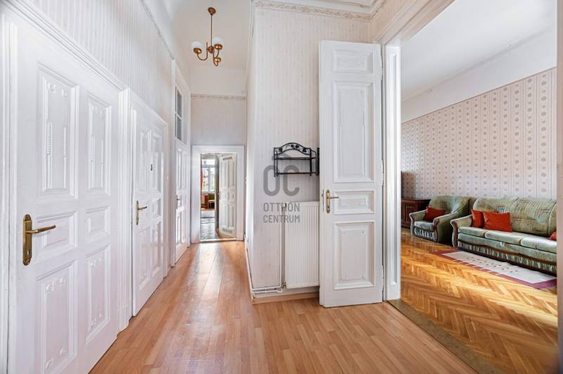 Budapest VIII. kerületében, a Semmelweis Klinikák és Corvin-negyed között, egy 1898-ban épült, karbantartott ház 1. emeletén, DNY-i tájolású, 127 m² alapterületű, 3 szobás+ 1 félszobás, amerikai konyhás nappalis, ablakos spájzzal, tágas fürdőszobával és külön WC-vel rendelkező, világos, jó állapotú lakás eladó. MIÉRT ez a lakás?• Tágas, jól alakítható elrendezés – 127 m²-enKülön nyíló szobák, tágas nappali, ablakos spájz és dupla mellékhelyiség – ideális nagycsaládosoknak, egyetemistáknak, de akár több külön lakás is kialakítható.• Műszakilag rendben, lakható Az alapvető rendszerek (gáz, víz, villany) már cserélve lettek, a lakás műszakilag stabil, így költözhető állapotban van. Az esztétikai frissítés már csak ízlés kérdése.• Lift van – első emeleti kényelemRitka kombináció: kényelmes megközelíthetőség és patinás, 19. századi ház klasszikus hangulattal.• Történelmi épület – különleges atmoszféraA Thék Endre bútorgyáros által építtetett ház nemcsak egy lakóépület, hanem egy darab iparművészeti történelem, különleges építészeti részletekkel.• Prémium lokáció – minden perceken belülKlinikák és Corvin-negyed között: M3 metró, 4-6-os villamos, egyetemek, Duna-part, éttermek, kávézók, mozi – minden, ami a kényelmes városi élethez kell.• Befektetésnek is kiválóAz egyetemek közelsége miatt hosszú távon is biztos bérlői keresletre számíthatsz – akár szobánkénti kiadásra, akár külön lakrészek kialakítására is van lehetőség.• Stabil, gondos társasházLift, jó állapotú tető és pince, már felújított vezetékek, megtakarításból tervezett villamoshálózat-korszerűsítés – nyugodt, előrelátó lakóközösség.HÁZA társasház 1898-ban épült, klasszikus építészeti stílusa hangulatos, időtálló megjelenést kölcsönöz az épületnek. A külső és belső homlokzat átlagos állapotú, a közös terek – különösen a lépcsőház – rendezettek és folyamatosan karbantartottak. A házban lift is található, ami tovább növeli a lakók kényelmét.A közös költség havi 38.200 Ft, amely tartalmazza a szokásos fenntartási díjakat és a felújítási alapot is. A gáz-, víz- és villanyszolgáltatás egyedi mérés alapján fizetendő.A társasház pénzügyileg stabil, megtakarítással rendelkezik. Az elmúlt években számos korszerűsítésre került sor, többek között megtörtént a gáz- és víz alapvezetékek teljes cseréje. A tető és a pince is jó állapotban van. A következő cél a teljes elektromos hálózat korszerűsítése, amelyhez a közösség jelenleg is takarékoskodik – várhatóan három éven belül ez a beruházás is megvalósul.ÉPÜLET TÖRTÉNETEAz Üllői út 66. szám alatti épületegyüttes egy különleges ipartörténeti emlék, amely a 20. század elején épült Thék Endre bútorgyáros megbízásából. Thék Endre a korszak egyik legismertebb iparművésze volt, aki olyan rangos intézmények berendezésein dolgozott, mint az Országház, a Magyar Tudományos Akadémia vagy a Zeneakadémia. A nevét nemcsak a kivételes minőségű bútorai tették ismertté, hanem az is, hogy műhelyében restaurálták például Ferenc József koronázási hintóját is.A három részből álló épületegyüttes – a 66/a, 66/b és 66/c – eredetileg a bútorgyár és annak reprezentatív környezete volt. A két saroképületet, a 66/a-t és 66/c-t Grioni Antal olasz származású építész tervezte neoreneszánsz stílusban, gazdagon díszített homlokzatokkal és iparművészeti utalásokkal. A homlokzati domborművek különböző mesterségeket – mint például a fafaragást, zongorakészítést – jelenítenek meg, ezzel is utalva az egykori műhely tevékenységére. A középső, 66/b alatti rész eredetileg maga a gyárépület volt, amely a háborús sérülések után jelentős átalakításon esett át: ma lakóházként működik, egyszerűbb és eltérő építészeti stílusban.Az Üllői út 66. nem csupán egy lakóépület, hanem egy letűnt iparművészeti korszak lenyomata, amely a mai napig őrzi egy mesterember és vállalkozó szellemű iparos örökségét.LOKÁCIÓAz Üllői út 66. Budapest VIII. kerületének központi részén található, amely tökéletes választás lehet saját célra, egyetemistáknak vagy befektetőknek, hiszen az ingatlan elhelyezkedése számos előnyt kínál:Közlekedés:• A 4-6-os villamos és az M3 metró perceken belül elérhető, biztosítva a gyors és kényelmes közlekedést a város bármely pontjára• 2-es villamos a Duna-part mentén, festői útvonalon egészen a Margit-szigetig• Számos buszjárat a közvetlen közelbenEgyetemek közelsége:• A Corvinus, ELTE és BME mindössze 10-15 perc alatt megközelíthetők, így az ingatlan ideális választás egyetemisták számáraKikapcsolódás és szórakozás:• A Corvin-negyed szomszédságában található, ahol modern bevásárlási lehetőségek, éttermek, kávézók és mozi várja a lakókat• A Duna-part és a Boráros tér sétatávolságon belül vanSzolgáltatások:• Vásárcsarnok friss, helyi termékekkel• Bankok, gyógyszertárak, posta és egyéb mindennapi szolgáltatások pár percreMIÉRT IDEÁLIS?Ez a nagy alapterületű, jól tagolt lakás kiváló választás lehet együtt költöző egyetemistáknak, akik közös otthonra vágynak, de szeretnék megőrizni a saját privát terüket. A külön nyíló szobák és a praktikus elosztás lehetőséget ad arra, hogy mindenki kényelmesen elférjen, miközben a közösségi élet is élvezhető marad.Ugyanakkor nagyobb családoknak is tökéletes választás, akik hosszú távra keresnek műszakilag megbízható, azonnal lakható ingatlant. Az esztétikai részletek alakítása már a saját ízlés kérdése, így valóban személyre szabható