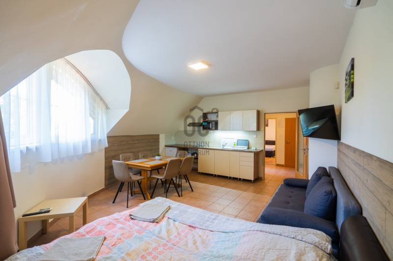 Képzelje el, hogy a nyári napsütésben vendégei mosolyogva érkeznek a Balaton partjáról, ahol mindössze 200 méterre az aranyló homoktól és a sokak által kedvelt, népszerű Zamárdi Nagystrandtól várja őket az Ön apartman háza. Egy hely, ahol a vendégélmény és a biztos bevétel kéz a kézben jár.Az ingatlan, ami már bizonyított:1600 m²-es, parkosított telek, gondozott kerttel, automata öntözőrendszerrel2001-ben épült, igényes, 8 különálló lakrész – mind teljesen berendezve, felszerelveKülönböző méretű szállások, összesen 15 kényelmes szoba, 14 fürdőszoba, 8 konyha/főzőfülkeVisszatérő vendégkör és előre lefoglalt szezon – azonnali bevétellelWellness élmény: szauna és fűthető, épített medenceModern napelem rendszer és gázkazán a hatékony üzemeltetésértTágas parkoló 10 autó számára a telken belülMiért ideális befektetés?Ez az ingatlan azonnal, zökkenőmentesen üzemeltethető – minden szükséges engedéllyel, felszereléssel és aktív online jelenléttel rendelkezik. A kiváló elhelyezkedés, a strand közelsége, valamint a bejáratott vendégkör garantálja a megtérülést és folyamatos bevételt. Ez nem csupán egy épület – ez egy bejáratott, működő vállalkozás a Balaton egyik legfelkapottabb pontján. A vendégek szeretik, visszajárnak, és már most biztosított a következő szezon bevétele. Önnek csak át kell vennie a kulcsot, és élvezni a nyári főszezon pezsgését és a stabil profitot.Befektetésre, boutique hotel- vagy apartmanház-üzemeltetésre tökéletes választás!