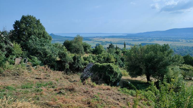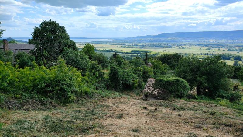 HEGYMAGASON a SZENT GYÖRGY-HEGY LEGMAGASABB DŰLŐJÉN, a bazaltsziklák aljában meghúzódó erdő alatt leírhatatlan és ELVEHETETLEN PANORÁMÁVAL a SZIGLIGETI VÁRRA és a BALATONRA eladó ez a különleges adottságú ZÁRTKERTI INGATLAN.Kizárólag az Otthon Centrum kínálatában!Az ingatlan a Szent György-hegy Csendár nevű részének legmagasabban fekvő dűlőútján található, több teraszos kialakítású, mindkét szélén széles kőfal szalad le.A területen elhelyezkedő, 13,1 méter x 4,8 méter külső méretű, 200 éves romos gazdasági épület a térképkivonaton feltüntetésre került, így SZŐLŐTELEPÍTÉS NÉLKÜL IS az eredeti alaprajzi külméreteivel FELÚJÍTHATÓ, vagy ÚJJÁÉPÍTHETŐ. A jelenlegi 55-60 cm vastag kőfalak figyelembevételével az épület nettó alapterülete 42,5 m2, így a tetőtér beépítésével együtt BRUTTÓ 85 m2-ES FELÉPÍTMÉNY VALÓSULHAT MEG.A gazdasági épület helyreállítása bejelentési eljárással kezdeményezhető a települési főépítésznél, nincs szükség építési engedélyre.A terület az 1700-as évek végétől egészen a 60-as évek végéig szőlőként volt művelve, amit a fellelhető, korabeli térképek igazolnak.A természet által visszavett terület letisztítása az invazív, tájidegen fafajoktól a szükséges hatósági engedélyekkel megtörtént.A továbbiakban az új tulajdonosa saját vágyai szerint hasznosíthatja, így álmodhat ide olajfaligetet, levendulaszigetet vagy saját szőlőültetvényt.Az áramszolgáltatónál a 3x20 amperes új elektromos bekötés folyamatban van, a földkábellel megvalósuló hálózatbővítés kiépítési költsége megfizetésre került. Megvalósulásáig, ideiglenes áram igénylésére lehetőség van.Víz kútfúrással, vagy telepített föld alatti tartállyal könnyen megoldható.Az adásvételi szerződés \"kifüggesztés\" köteles.Hegymagas a Tapolcát Szigligettel összekötő út felénél, a Tapolcai-medence közepén kiemelkedő, 415 méter magas Szent György-hegy délnyugati lábánál található.Bazaltorgonáival a világon egyedülálló természeti látnivaló, csakúgy, mint a hegy magasabb pontjairól elénk táruló pazar panoráma a Balatonra, Szigliget település várára, a Badacsonyra és a többi vulkanikus tanúhegyre. A hegyről szinte az egész Balaton-felvidék belátható.A település kulturális programjaiban megnyilvánul a község hagyományőrző szellemisége. A működő hegymagasi termelői piac mára közösségi ponttá nőtte ki magát, találkozóhelye barátoknak, kikapcsolódásra vágyóknak, és helyben készült finomságokat kínál a hét minden napján. Rendszeresen szervezett programok, lovaglási lehetőség is várja az idelátogatókat.Szigliget (5 km), Tapolca (6 km) Badacsony (10 km) közelségben találhatóak.Ragadja meg a lehetőséget és valósítsa meg álmait egy rendkívül szép és nyugodt természeti környezetben!További részletekért, illetve az ingatlan megtekintése érdekében várom megtisztelő megkeresését.