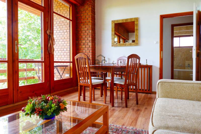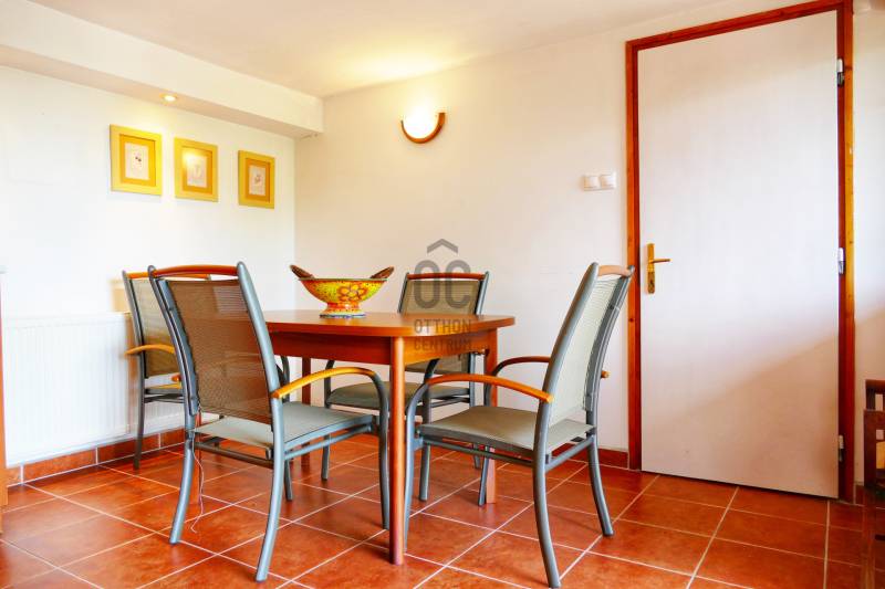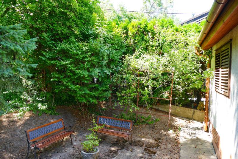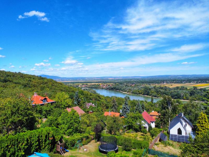 Szentendre, Boldogtanya belterületén, téliesített hétvégi ház eladó!TELEK:- 959 nm- panorámás- csendes környék- aszfalt úton megközelíthető- bekerített minden oldalról- autóbeálló , díszkő burkolatú- rendezett, ápolt kert- előkertben fenyőfák adják az árnyékot a kövezett terasz részre- a telek hátsó oldala enyhén lejtős,- oldalkert részben örökzöldek, gyümölcsfák ( cseresznye, mogyoró és szilva) , cserjék, évelő virágok- kert jelentős része füvesítettHÉTVÉGI HÁZ : - 1970-es években épült- tégla építésű- 2006-ban teljes körű felújítást végeztek a tulajdonosok.- a ház megkímélt, újszerű állapotban van- két különálló részből áll- a lakótér két szoba, nappali, konyha, fürdőszobából áll- 55 nm- belmagassága 280 cm-beépített bútor az előszobában- a nappaliból és az egyik hálószobából csodálatos panorámában lehet részünk.- Nappaliból egy 11,5 nm fedett erkélyre juthatunk ki.-parketta burkolat , fürdőszobában , konyhában, előszobában járólap- gáz cirkó fűtés, radiátorral- télen temperálva van a hőmérséklet- nyílászárók fából- nagy ablakokon a nappaliban redőny, a kisebb ablakokon zsalugáter- kert kapcsolatos szint 35 nm két részből áll, az egyik rész 16 nm, ebből kb 5 nm zuhany kabinos fürdőszoba, valamint egy sport szoba ( 11 nm) oldalfal hosszúságban beépített szekrényekkel a másik rész ( 20nm) is két helyiségből áll, egy konyha- étkezővel, és egy nagy tároló, beépített bútorokkal, szekrényekkel- terasz és kert kapcsolat - a ház teljes bútorzattal eladó ( néhány személyes tárgy kivételével) - Keleti fekvésű