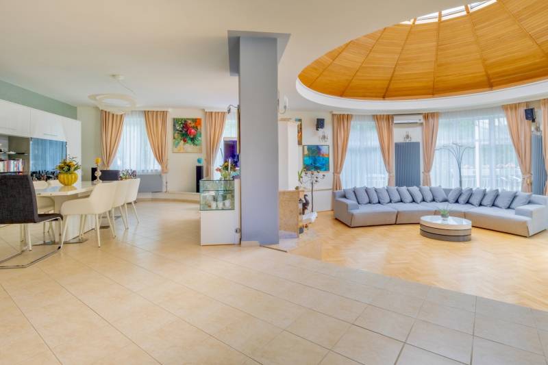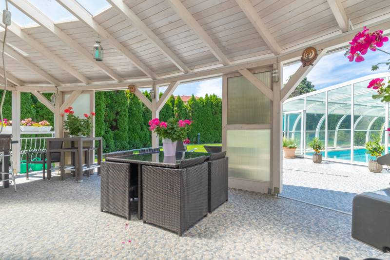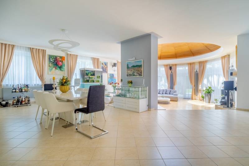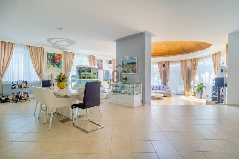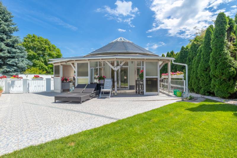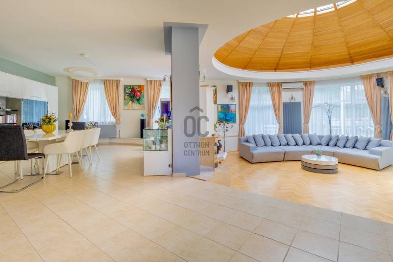Új tulajdonosát keresi Páty kedvelt részén egy önálló, 285 m2-es alapterületű családi ház. Szépen gondozott privát kert veszi körül, medencével, két állásos garázzsal és további autóbeállóval. Ha igényesen kivitelezett, napfényben úszó, különleges otthont keres családja számára feltétlenül nézze meg!KÖRNYÉK ÉS KÖZLEKEDÉS:- Páty, Pest vármegye – Budapesttől 20 km-re a Zsámbéki medence délkeleti peremén fekszik, az M1-es autópálya mellett. - Családok, nyugodt kertvárosi hangulatot kedvelők által különösen ajánlott település. - A ház Pátykert városrész (Zsámbéki kanyar) egyik zsákutcájában található, amihez iskolák, óvodák, bölcsődék, boltok kényelmesen elérhető távolságban vannak. - Tömegközlekedési eszközök 10 perc séta távolságban elérhetőek.A HÁZ ÁLTALÁNOS JELLEMZŐI:- 2002-ben, 966 m2-es parkosított, sík telekre épült, MINDEN IGÉNYT KIELÉGÍTŐ épület.- 38 cm Porotherm téglából épült, 12 cm szigetelést kapott, monolit vasbeton födémmel ellátott.- A telek kelet-nyugati tájolású, az utcafront szélessége 18 méter.- A ház kiváló adottságú, átgondoltan tervezett, MAGAS MINŐSÉGŰ anyagokkal kivitelezett.- A földszinten 191 m2 élettér áll rendelkezésre, amely két jól elszeparált részből tevődik össze.- Jobb oldalon a ház központi része, a közel 90 m2-es, egész nap FÉNYÁRBAN ÚSZÓ amerikai konyhás nappali és étkező található, valamint egy fél szoba, mely jelenleg egy dolgozószobának lett kialakítva. - Bal oldalon helyezkedik el szülői hálószoba, gardróbbal, külön fürdőszobával.- Továbbá három szoba és egy fürdőszoba mellékhelyiséggel, így biztosítva a család teljes nyugalmát.- A minőségi kivitelezésnek köszönhetően a műszaki állapota kiváló.- A modern belső tér hangulatát az igényes burkolatok, a hatalmas üvegfelületek és a felülvilágító kupola határozza meg.- A Rehau műanyag nyílászárók hőszigetelő üvegezéssel lettek ellátva, belső nyílászárók fa szerkezetűek.- A Weishaupt kondenzációs gáz fűtési rendszer biztosítja a megfelelő hőmérsékletet és a meleg vizet.- Égéstermék elvezetéséhez Schiedel kéményeket alkalmaztak, a ház hűtését klíma biztosítja.- Az igényesen kialakított, privát, PARKOSÍTOTT KERT mellett egész évben használható FEDETT MEDENCE szolgálja a kényelmet.- Az alsó szinten található KÉT ÁLLÁSOS GARÁZS mellett, további két nyitott autóbeállási lehetőség van.AZ ALSÓ SZINT FELOSZTÁSA:- kazánház mosókonyhával,- SZAUNA fürdőszobával,- külön mellékhelyiség,- KONDITEREM és közösségi tér amely teljesértékű ablakkal ellátott, kapcsolódik a garázshoz és a belső lépcsőn keresztül megközelíthető földszinti lakótérhez.FÖLDSZINT FELOSZTÁSA:- a keleti oldalon található a SZÜLŐI HÁLÓSZOBA GARDRÓBBAL és saját fürdőszobával,- további 3 hálószoba,- fürdőszoba zuhanyzóval, JAKUZZIVAL és mellékhelyiséggel,- a nyugati oldalon található a közel 90 m2-es amerikai konyhás nappali étkezővel, egy szoba és egy különálló mellékhelyiség,- FEDETT TERASZ, medence és kert kapcsolattal.FENNTARTÁSI KÖLTSÉGEK:- A ház magas minőségben épült, műszaki állapota kiváló, a Weishaupt fűtési rendszernek és nyílászáróinak köszönhetően a gáz költsége nagyságrendileg 30.000.- Ft.- A vízdíj medence használatával együtt 15-20.000.- Ft, az áram 20-30.000.- Ft között, fogyasztás alapján számolható.AZ INGATLAN MEGTEKINTHETŐ:- VIDEÓN,- személyesen,- online személyes bejelentkezéssel.FINANSZÍROZÁSBAN (AKÁR ONLINE IS) SEGÍTÜNK:- Bank-független hitelcenterünk díjmentesen versenyezteti az összes hazai bank és hitelintézet ajánlatát.- Önnek annyi a dolga, hogy egyeztet kollégáinkkal, majd a személyre szabott ajánlatok közül kiválasztja a hosszú távon is legkedvezőbb konstrukciót.- Szakértőink több mint 20 éves tapasztalattal állnak rendelkezésére: fogyasztóbarát lakáshitelek, babaváró hitel, teljes körű CSOK Plusz és Otthon Start ügyintézés egy helyen.- Előzetes időpont-egyeztetéssel akár munkaidőn túl is rendelkezésére állunk.Amennyiben tágad, kényelmes otthont keres családja számára a főváros közelében, csendes környezetben HÍVJON FEL és nézzük meg együtt.