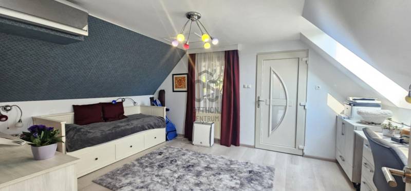 Gödöllőn a Blaha részen egy csendes utcában kínálok eladásra egy 130 nm-es 3 szintből álló könnyűszerkezetes családi házat, melyet 1993-ban építettek.562 nm-es panorámás telken helyezkedik el, itt a zöld növényzetről öntözőrendszer gondoskodik.Az épületet folyamatosan az évek során karbantartották, nemrég újra színezték, műanyag ablakok kerültek beépítésre.A legalsó szinten mely a telek belső udvarából közelíthető meg és a földszinten helyezkedik el egy külön kis lakrészt alakítottak ki, melyben egy tágas hálószoba, fürdő wc , gardrób és konyha lett kialakítva.Ideális lehet akár családon belül szülőknek, vagy akár kiadásra is jó lehetőség.A másik lakrész két szinten helyezkedik el, itt összességében a nappalin kívül 3 tágas szoba lett kialakítva, illetve szintenként fürdő wc-vel.Az alsó szinten nappali teraszkapcsolattal, hálószoba, konyha étkezővel kamrával, fürdőszoba és külön wc.Belső lépcsőn jutunk fel az emeletre.Itt két írányban tágas hálószobák, középen egy társalgó, és egy fürdőszoba zuhanyzóval wc-vel.A hálóból egy közel 9 nm-es panorámás erkélyre jutunk ki.Mindkét emeleti szoba klimatizált.A másik hálóból a 41 nm-es két autó számára kialakított fedett autóbeállóba juthatunk.Szintén ekkora tároló található a beálló alatti részén.Az ingatlan jó állapotban van, felújítást nem ígényel.Fűtéséről vegyes tüzelésű gázkazán gondoskodik.Ha egy ideális otthont keres csendes zöldövezetben, ami Budapesttől is egy rövidebb autóút akkor érdemes személyesen is megtekinteni.A közelben minden megtalálható amire csak szükség lehet.Rugalmasan megtekinthető!Várom hívását!
