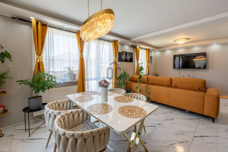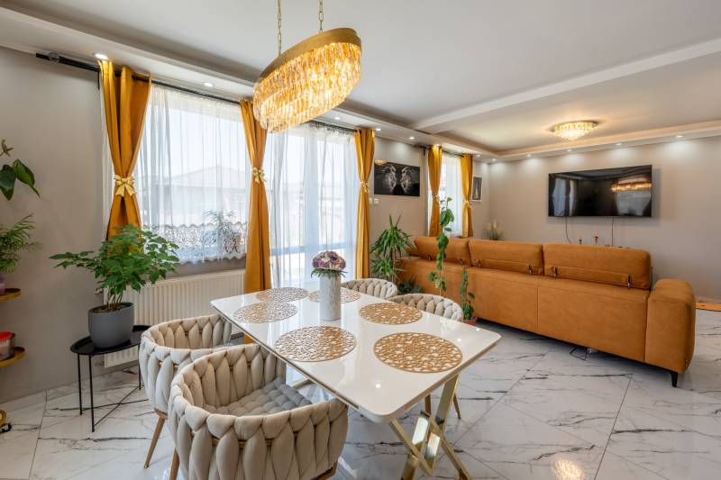 Frissen felújított, világos és tágas otthon várja Önt Halásztelek kertvárosias környezetében. A ház 2008-ban épült tégla épület, melyet a tulajdonosok a tavalyi évben felújítottak. Új burkolatok, új konyhabútor gépészettel, új kazán, új belső nyílászárók. Eredetileg nappali + 3 szobás volt de hogy a nappali szép tágas legyen, nappali + 2 szobássá alakították.Alapterülete 80,15 m2-es, konyhaszigetes amerikai konyhával, két szobával és egy fürdőszobával rendelkezik. Fűtése és melegvíz ellátása gáz cirkó rendszerről megoldott, radiátoros hőleadókkal.A 20 m2-es terasz ideális helyszín a baráti összejövetelekhez, reggeli kávézásokhoz vagy egy kellemes esti pihenéshez,A kert gondozásához fúrt kút áll rendelkezésre, az udvaron 2-3 gépkocsi tud parkolni. Tehermentes ingatlan!Az M0-ás autóút közelsége lehetővé teszi, hogy gyorsan elérje Budapest központját, míg a helyi buszjáratok biztosítják a zavartalan közlekedést a környező településekre. A környék számos szolgáltatást kínál, beleértve a boltokat, éttermeket és iskolákat.