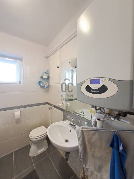 Eladó Debrecenben, a Falógerben egy beton alapon tégla építésű, kiváló elosztású, nappali+ kétszobás, duplakomfortos ikerház, amely tökéletes választás lehet családosok számára, akik modern, tágas és kényelmes otthont keresnek. Az eladásra kínált ikerház 79 nm-es nettó alapterülettel rendelkezik, így bőséges teret biztosít egy nagyobb család számára. A világos, modern design és az egyedi tervezésű belső terek azonnal magukkal ragadják a tekintetet, a tágas nappali pedig ideális helyszín lehet a közös családi programokhoz.Az ingatlan fűtése gáz (cirko) rendszerrel és cserépkályhával történik, míg a hűtés klímával biztosított, így az év bármely szakában kellemes hőmérséklet várja a lakókat. A ház rendkívül energiatakarékos annak köszönhetően, hogy a falakra 10cm-es szigetelés került.Az ingatlanba kétrétegű műanyag nyílászárókat építettek be redőnnyel és szúnyoghálóval felszerelten, a konyhába gépesített konyhabútor került. A beépített bútorok és szekrények, illetve a gardrób praktikus megoldást nyújtanak a tárolásra. A házhoz tartozó 8 négyzetméteres terasz tökéletes helyszín a reggeli kávézásra vagy a nyári estéken történő pihenésre. A házhoz tartozik egy nagyméretű kert, amelyben fúrt kút van és egy épített kemence is helyet kapott. Az udvarban van egy 15 nm-es garázs, így a parkolás egy autó számára megoldott. Az ingatlanhoz tartozik egy 15 nm nagyságú pince, egy 8nm-es és két 6 nm-es tároló, amelyek mellett egy plusz autóbeálló is kialakítható.A környék ellátottsága kiváló, a mindennapi élethez szükséges szolgáltatások könnyen elérhetőek. A csendes környezet lehetővé teszi a nyugodt pihenést, A közlekedés is rendkívül kedvező, a buszmegállók rövid sétával megközelíthetőek, így az ingatlan ideális választás lehet azok számára, akik szeretnék élvezni a városi élet előnyeit, miközben a természet közelségét is megőrzik. Ez a különleges ház nemcsak otthont, hanem egy életstílust is kínál, amelyhez a modern kényelem és a csendes környezet egyaránt hozzájárul.Tökéletes lehetőség fiatalok, családok számára.Az ingatlan tulajdonjoga tiszta, per , tehermentes.Amennyiben hirdetésünk felkeltette érdeklődését, várjuk hívását a hét minden napján!
