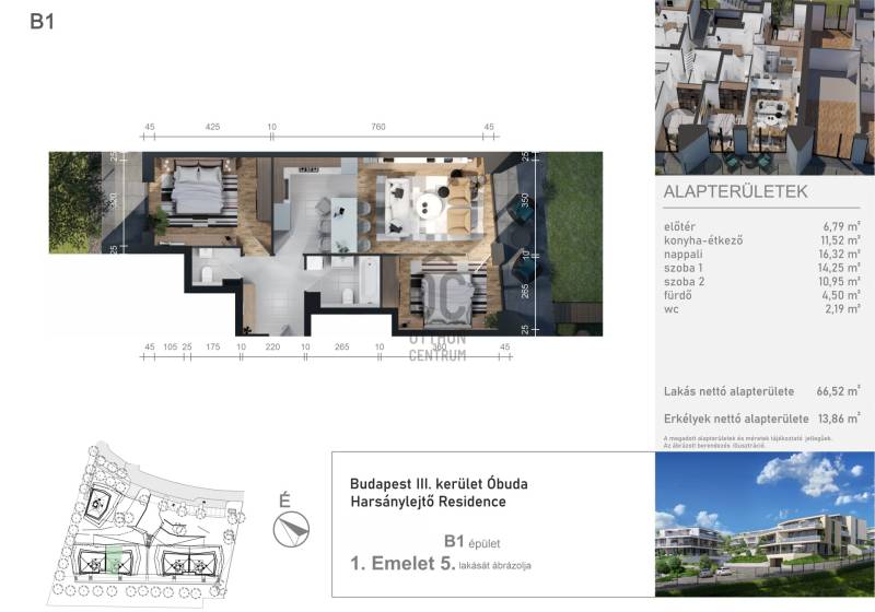 Az ingatlan nettó alapterülete 66,52 m² + 13,86 m² terasz.Projekt bemutatásaBUDA LEGEXKLUZÍVABB 5 CSILLAGOS LAKÓPARKJA ÉPÜL!A luxus valódi értéke a ritkaságban rejlik. Ahogyan a világ legnagyobb márkái is csak limitált darabszámban kínálják alkotásaikat, úgy a Prestige liget lakásai is kizárólag szűk kör számára elérhető. Itt nem tömegterméket értékesítünk, hanem egy életérzést adunk át!A Hármashatár-hegy lábánál, a Natura 2000 természetvédelmi terület peremén, a fák ölelésében bontakozik ki a modern magyar építészet utópisztikus alkotása!És mégis miért olyan különleges?- A LOKÁCIÓ MIATT! Buda elit villanegyedében járunk, itt nincsenek omladozó tűzfalak, kizárólag modern zöldövezeti villák sora tárul elénk!Néhány perc autóútra található az Árpád híd, a GoBuda bevásárlóközpont, a Kolosy tér az AKG iskola és a British International School. - az erdő szomszédságában található - az erdő melletti legfelső telkeken indul a fejlesztés, a teraszról szinte megérinthetjük a fák lombjait! - budai hegyekre és zöldre néző kilátás, a privát teraszokról, a természetközeliség mellé a szemet nyugtató zöld látvány elképesztően feltöltő hatású...-ultramodern homlokzat, hatalmas üvegfelületekkel! - elképesztő csend és nyugalom -ezzel számolhat, aki itt vásárol - az utolsó építkezés a környéken az utolsó telkeken, így a nyugalom garantált! - PÁRATLAN MŰSZAKI FELSZERELTSÉG - egy lakópark sem versenyezhet minőségben és felszereltségben ebben az árkategóriában!A lokációról bővebben:Harsánylejtő Buda legkedveltebb villaparkos területe, széles utcák, újépítésű villák és modern épületek, illetve szemet gyönyörködtető zöld terület jellemzi. Itt még a fű is olyan zöld, mint Új-Zélandon!A zöldövezeti, kertvárosi milliő verhetetlen lokációval párosul, csendes, zöld környezet, egy ugrásra minden zolgáltatástól!Gépjárművel:Árpád-híd 10 percreBritsih School 8 percreA 2. kerület szintén 10 percreÉs néhány perc alatt elérhető a Gobuda Bevásárló Központ(mozi, Libri, cukrászdák, fodrászat, posta, bankfiók stb..), Lidl, Tesco, a Kolosy tér és minden szolgáltatás amit csak kívánni lehet!A környéket több buszjárat is kiszolgálja, így a város minden pontja könnyedén elérhető!MŰSZAKI TARTALOM:Itt nem a profit, hanem a minőség dominál!Bármely projekttel összehasonlítjuk, nem kérdés merre billen a mérleg! A műszaki tartalomból csak néhány pont:- A budai luxus villák bejárati ajtóinak mintájára extra méretű, több ponton záródó, Mabisz minősítésű HANGSZIGETELT okos bejárati ajtó minden lakáshoz több, mint 2.000.000 Ft-os értékben! - A homlokzatra felhelyezett átszellőtetett homlokzati rendszert borító Prefabond lemezek értéke meghaladja a 200.000.000 Ft-ot!!!!- Extra hanggátlás!!! A hangátló falak hanggátlását tovább fokozzuk épített gipszkarton előtétfallal és 5-5 cm airrock Rockwool kőzetgyapot hangszigeteléssel!- friss levegő egyenesen az erdőből! A hővisszanyerős szellőztetőrendszer egyenesen az erdőből szívja be a friss levegőt, a lakások az ablak nyitása nélkül szellőznek!- Európa vezető alumínium nyílászáró gyártójának piacvezető terméke RC2 - RC3 - PAS 24 betörésvédelemmel, extrém víz és szél ellenállással és extrém akusztikával! Nem csak ultramodern és gyakorlatilag keret nélküli EI30 tűzállóságú, ütésálló ablakok kerülnek beépítésre, de a hanggátlás a bejárati ajtókkal és a falazatokkal együtt utánozhatatlan!5 csillagos minden felhasznált építési termék amelyek I. osztályú munkával párosulnak!A szakemberek a saját területük kiválóságai, mesterségük igazi virtuózai. A felhasznált építési termékek és az elvégzett munka minősége itt nem az ésszerű piaci döntésekről szól, a cél a legek, legje!!!Bár az értéknövekedés elkerülhetetlen, de a projekt lakásait végfelhasználóknak terveztük! Ahogyan minden presztízsprojekt esetében, úgy itt is az előrelátó első vásárlók élvezhetik a legnagyobb előnyöket.Várható átadás: 2027 Q4Nálunk nem lakást vásárol, hanem életstílust, amelyet máshol nem kaphat meg!Várom megtisztelő hívását!