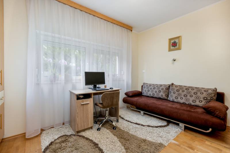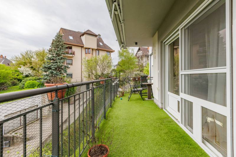 Sasad egyik legszebb, csendes utcájában kínálok megvételre egy különleges adottságokkal rendelkező, napfényes, tágas lakást. A lakás intim, zöld növényekkel körbevett környezetben helyezkedik el, ahol a nyugalom és a biztonság garantált. A kíváncsi tekintetektől elzárt, bájos terasz tökéletes helyszíne lehet reggeli kávéknak vagy esti pihenéseknek.Főbb jellemzők 90 m² lakótér + 14 m² terasz Dél-nyugati fekvés – egész nap világos, napfényes 1. emeleti lakás egy újszerű, liftes, mindössze 6 lakásos társasházban Intim, növényekkel övezett, zavartalan környezetCsaládbarát, rendezett, zöldövezeti utcaElrendezésTágas, világos nappaliÉtkező, gépesített konyha, külön kamrával 3 külön nyíló hálószoba 1 fürdőszoba + 1 külön WC Beépített tárolóbútorokMinden helyiség ablakos, redőnnyel és szúnyoghálóvalKomfort és műszaki felszereltség3 darab hűtő-fűtő klíma Motoros, szélérzékelős napellenző a teraszon Gázkazános fűtés és melegvízPadlófűtés a hidegburkolatos helyiségekben, radiátoros fűtés a szobákbanA teremgarázshoz fűtött lehajtó biztosítja a kényelmes és biztonságos parkolást télen isTartozékok (az ár része): Nagyméretű teremgarázs hely Külön, zárható tárolóA társasház és kertKis létszámú, barátságos lakóközösségGondozott, parkosított kert automata öntözőrendszerrelSaját játszótér a gyerekeknekA kertet hivatásos kertész ápoljaElhelyezkedés, infrastruktúraKiváló közlekedés: M1/M7, MOM Park, Allee, Etele Pláza néhány perc alatt elérhetőA közelben: iskola, óvoda, boltok, parkok, játszótér, orvosi rendelőGarázs és tároló 25 000 000Teljes vételár garázzsal tárolóval 214 000 000 Ft