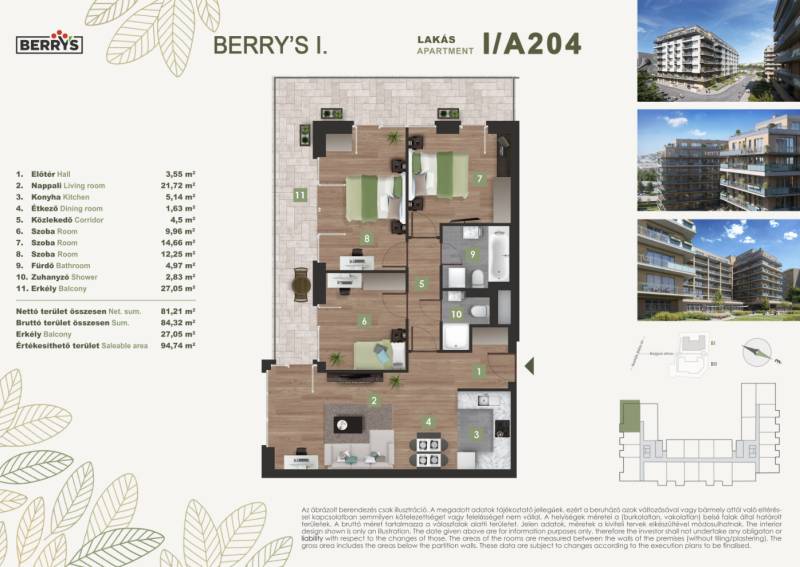 Projekt bemutatásaA XI. kerületi Bartók Béla úthoz közel épülő lakópark egy csendes, nyugodt környezetet kínál a város forgatagához közel. Az újbudai városrészben kialakított új lakónegyed kiváló közlekedési kapcsolatokkal rendelkezik. A zsákutcából nyíló elhelyezkedés biztosítja a forgalommentes, zavartalan lakókörnyezeti életet.A lakópark elhelyezkedése ideális azok számára, akik gyorsan és kényelmesen szeretnék elérni a város bármely pontját. A 4-es metró közelsége, az 1-2 perc sétatávolságra elérhető villamosok és a környéken közlekedő nappali és éjszakai autóbuszjáratok kiváló közlekedési lehetőséget biztosítanak. Az M1-es és M7-es autópályák közelsége, vagy a Kelenföld vasútállomás megkönnyíti az ország minden részébe, kiemelten a Balatonhoz és a Velencei tóhoz tervezett utazásokat.A legmodernebb mennyezeti hűtő- fűtő rendszernek köszönhetően alacsony fenntartási költségek várnak. A zöldtetők és az épület körüli zöldterületek nemcsak természetes hőszigetelést adnak, de a közösségi életet is támogatják.A gyönyörű kilátás nyugalma a városi nyüzsgés harmóniájával. A Berry’s minden lakásához tartozik loggia, erkély, vagy terasz!Várható műszaki átadás: 2027 vége